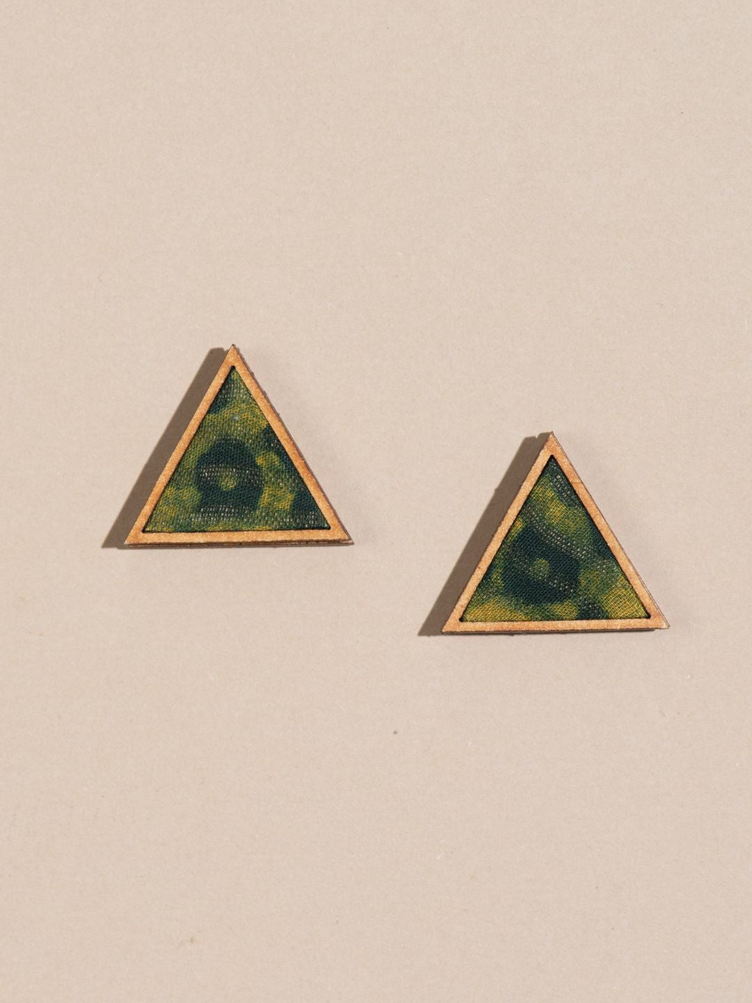 Introducing the Green Batik Wood Triangular Studs, a blend of repurposed fabric and wood symbolizing the sustainability ethos. Crafted from garment cuttings and compressed wood dust, these earrings radiate style and echo the commitment to a greener tomorrow. Made in India, an elegant testament to conscious living.