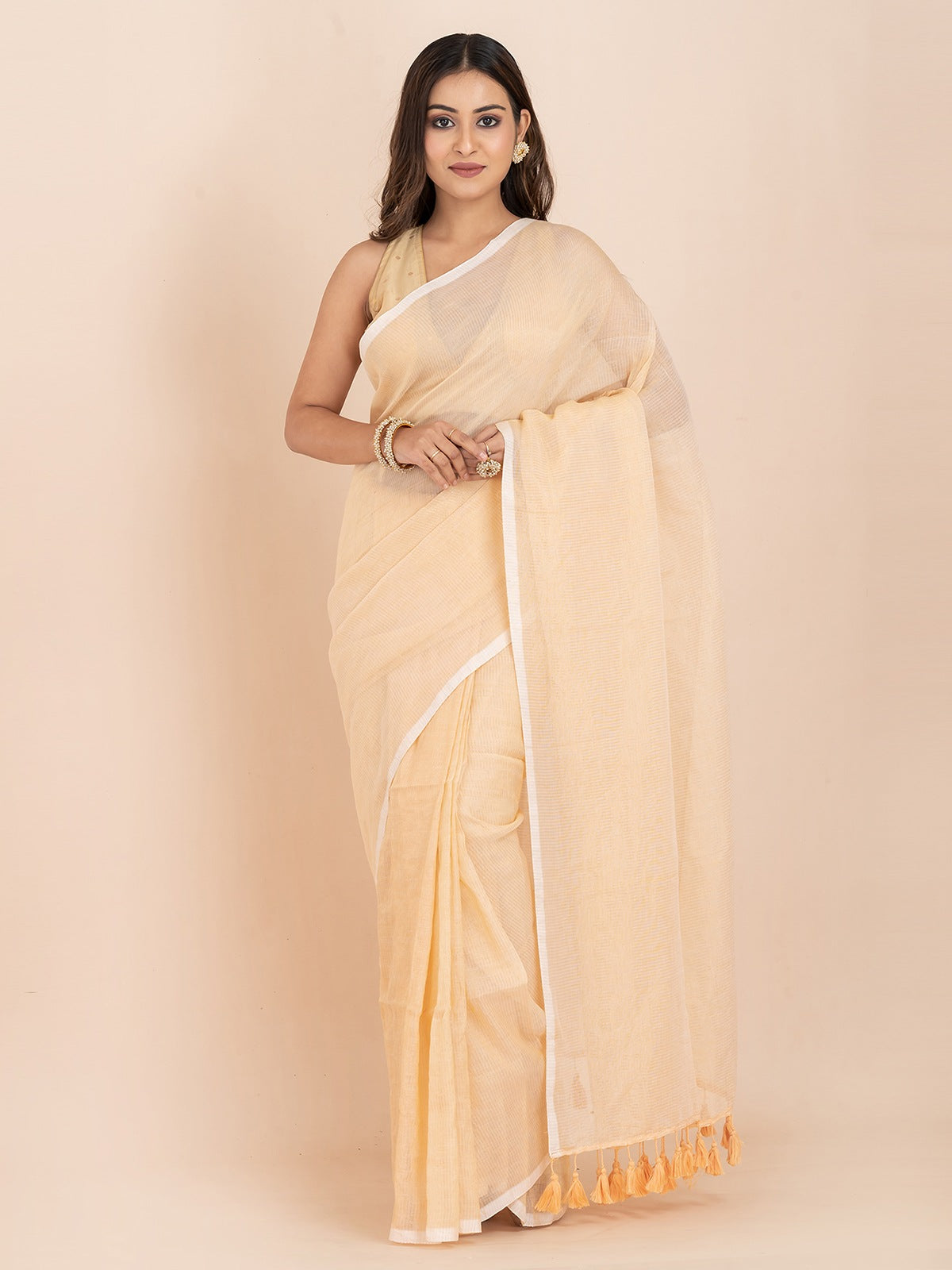 Beige Breeze Pure Cotton Striped Saree With Metallic Zari Without Blouse Piece