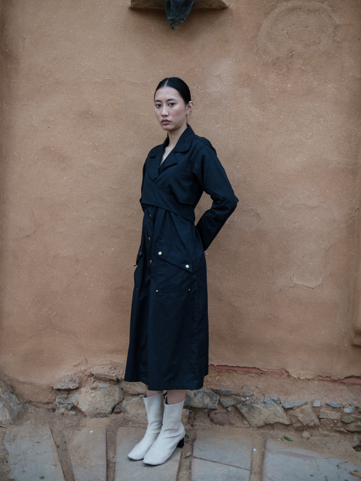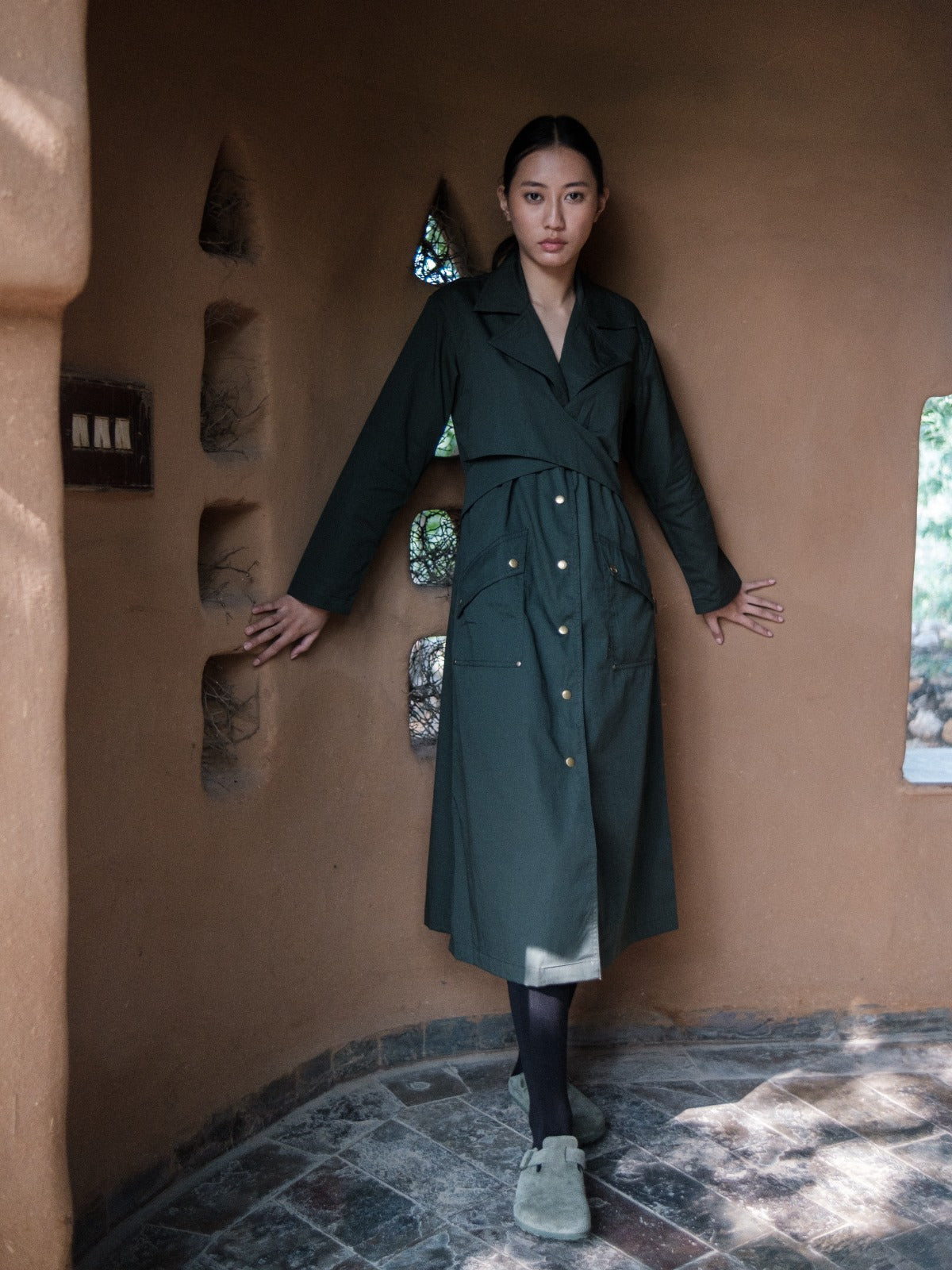 This incredibly versatile trench coat showcases a refined notch collar, a classic button-down front, and an elegant wrap detail. Its timeless design transcends the seasons, making it a wardrobe staple for year-round wear.