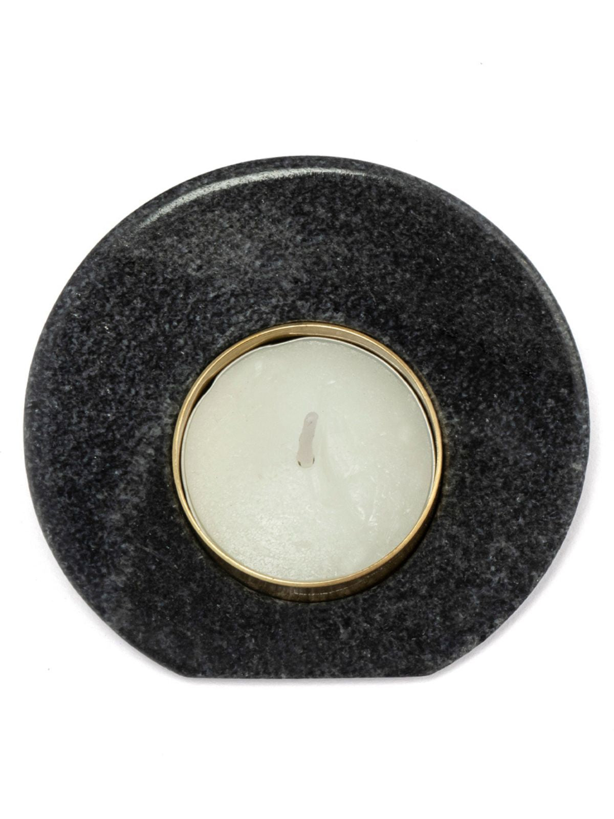Carved from one single piece of white marble and black marble, these Sangemarmar tea-light, is a perfect blend of traditional and contemporary design. With its geometric form and detailed curved form give them a very modern outlook. These handcrafted Sangemarmar tea light, definitely brings attention to its form and its finish. A set of two or three will brighten up the space around you. The combination of white/black marble with polished brass t - light makes them an elegant piece.