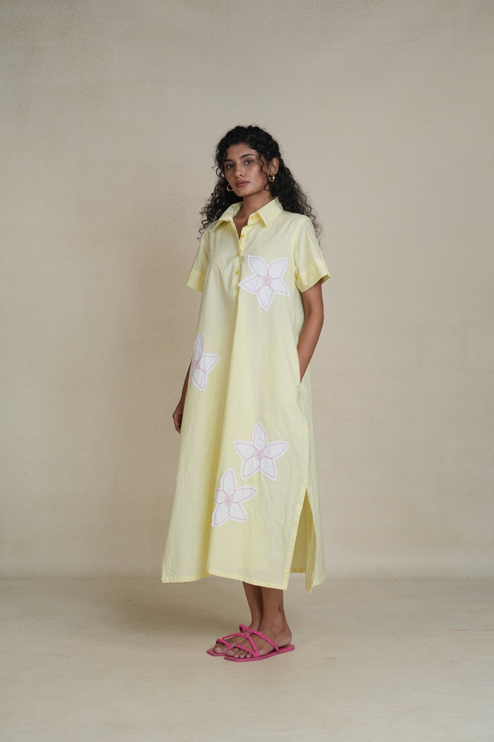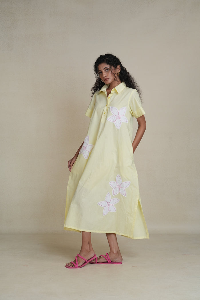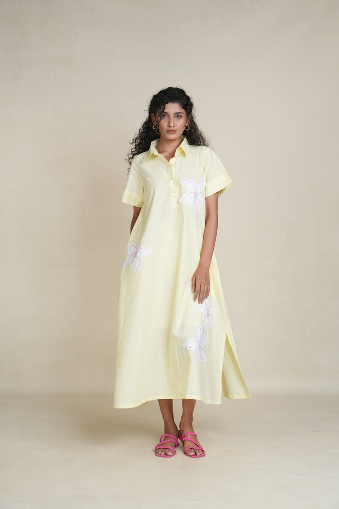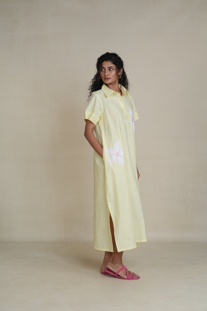 The Blossom Dress from Trabea’s Golden Hour collection is a pastel yellow beauty designed for comfort and charm. Featuring a relaxed fit and delicate, playful floral details, this women’s summer dress blends soft elegance with everyday wearability. Made from breathable fabric, it’s the perfect outfit for women who want a light, feminine touch for warm days, weekend outings, or vacation strolls