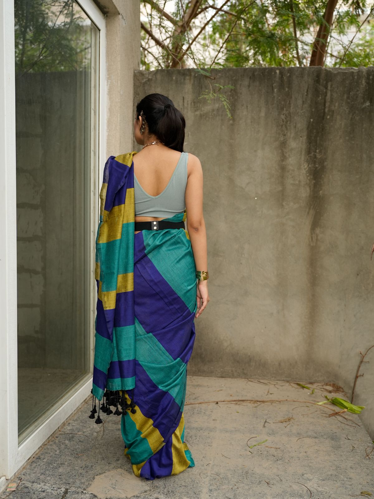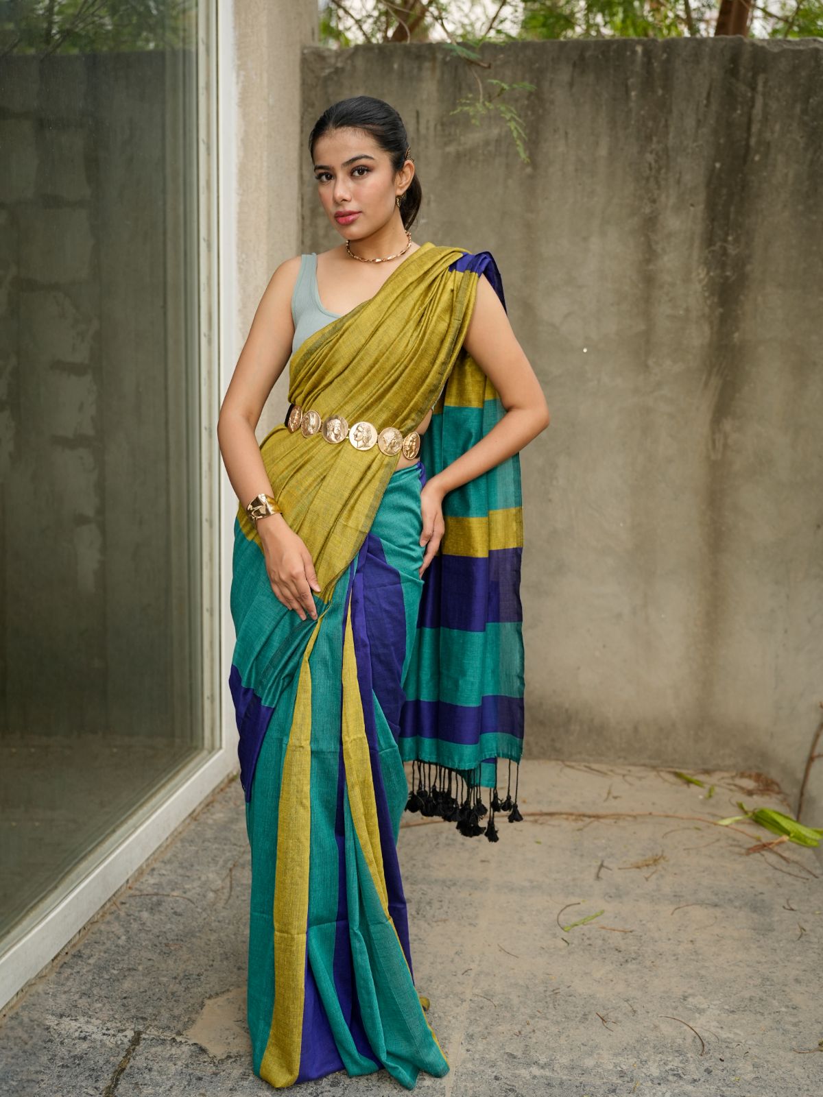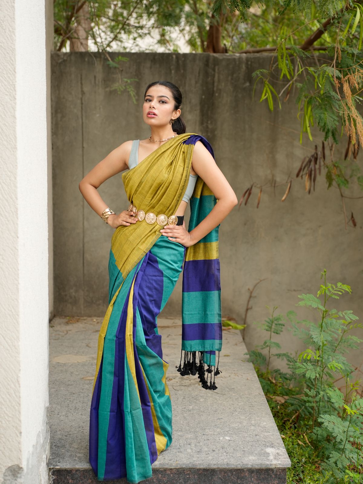 This cotton saree merges bohemian aesthetics with regal elegance, delivering a sophisticated piece that transcends traditional boundaries. The fabric drapes with fluid grace while maintaining the structured beauty of classic saree silhouettes, making it an ideal choice for those seeking refined style with modern sensibility.