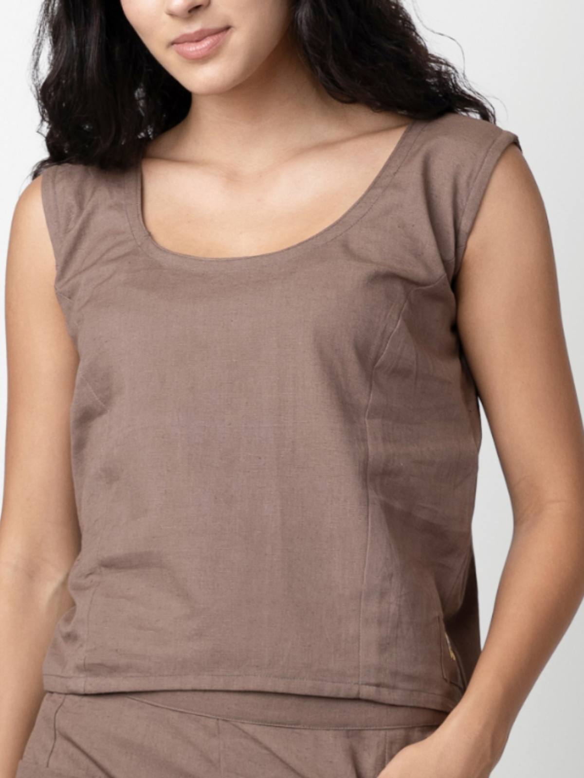 This sleeveless top features a flattering scoop neckline and princess cut for a gently tailored fit. Designed for warm days or easy layering, it's finished with a subtle embroidery patch at the back. Pairs beautifully with the Draped Harem Skirt for a coordinated look.