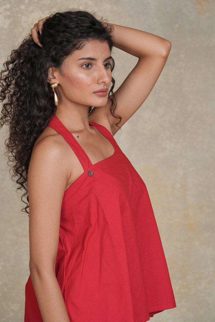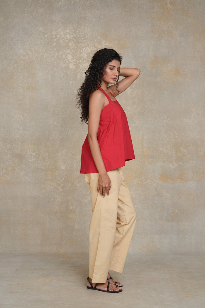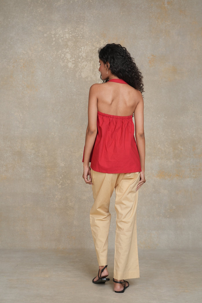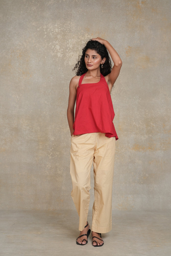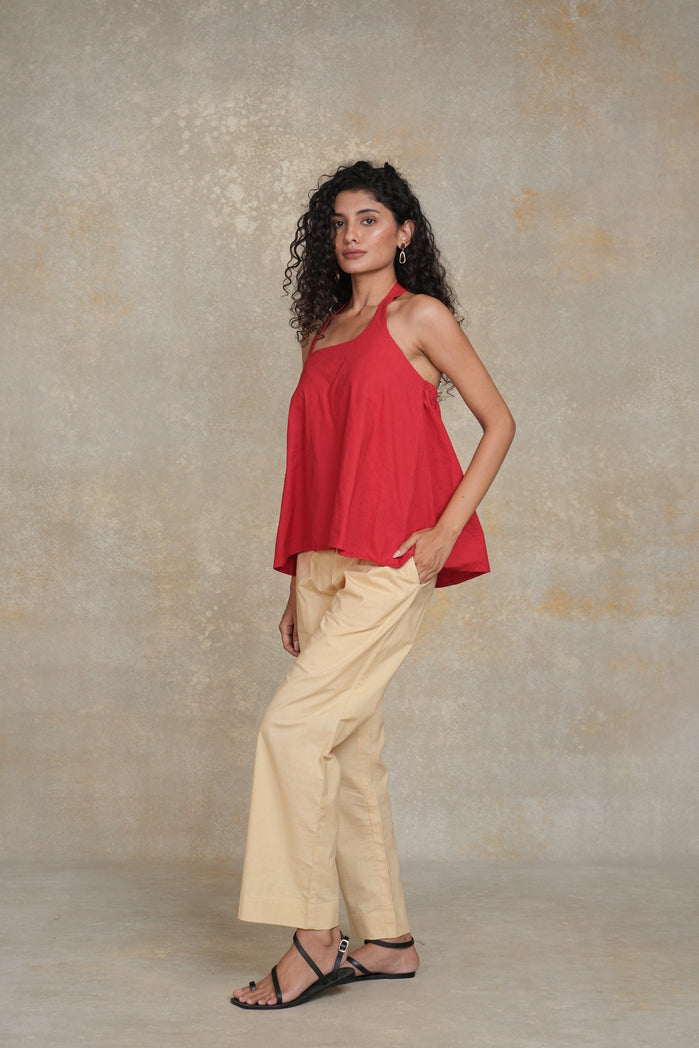 The Casablanca Set from Trabea’s Golden Hour collection features a bold red halter neck top with a loose, relaxed fit, paired with beige straight-fit pants. Designed for ultimate comfort and style, this breathable fabric set offers a chic and effortless look. Perfect for casual outings, summer gatherings, or a laid-back vacation wardrobe, the Casablanca Set combines bold color with relaxed elegance.