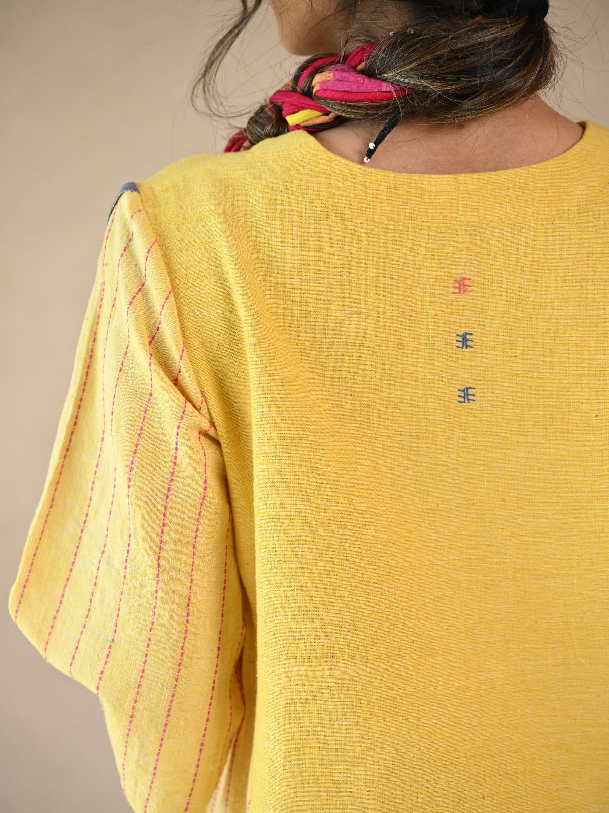 Elevate your wardrobe with these uncut style dress, made from organic handwoven Kala cotton. The yellow color offers timeless versatility, while the uncut design adds a touch of modern sophistication. With a comfortable fit and delicate thread embroidery, these dress are perfect for any occasion. Embrace sustainable fashion with this stylish and eco-friendly piece.