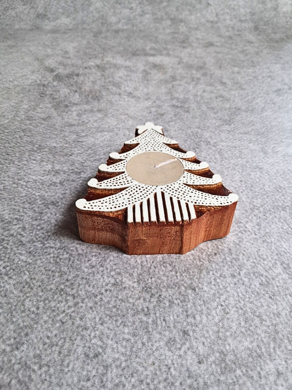 Crafted by skilled artisans using traditional woodcarving techniques, these tea lights showcase authentic Indian craftsmanship. Each piece originates from block-making traditions, bringing heritage and character to your seasonal décor. The set combines sustainability with functionality—constructed from biodegradable wood and designed for reuse with replaceable candles. Perfect for creating warm, ambient lighting while supporting eco-conscious living and traditional artisan practices.