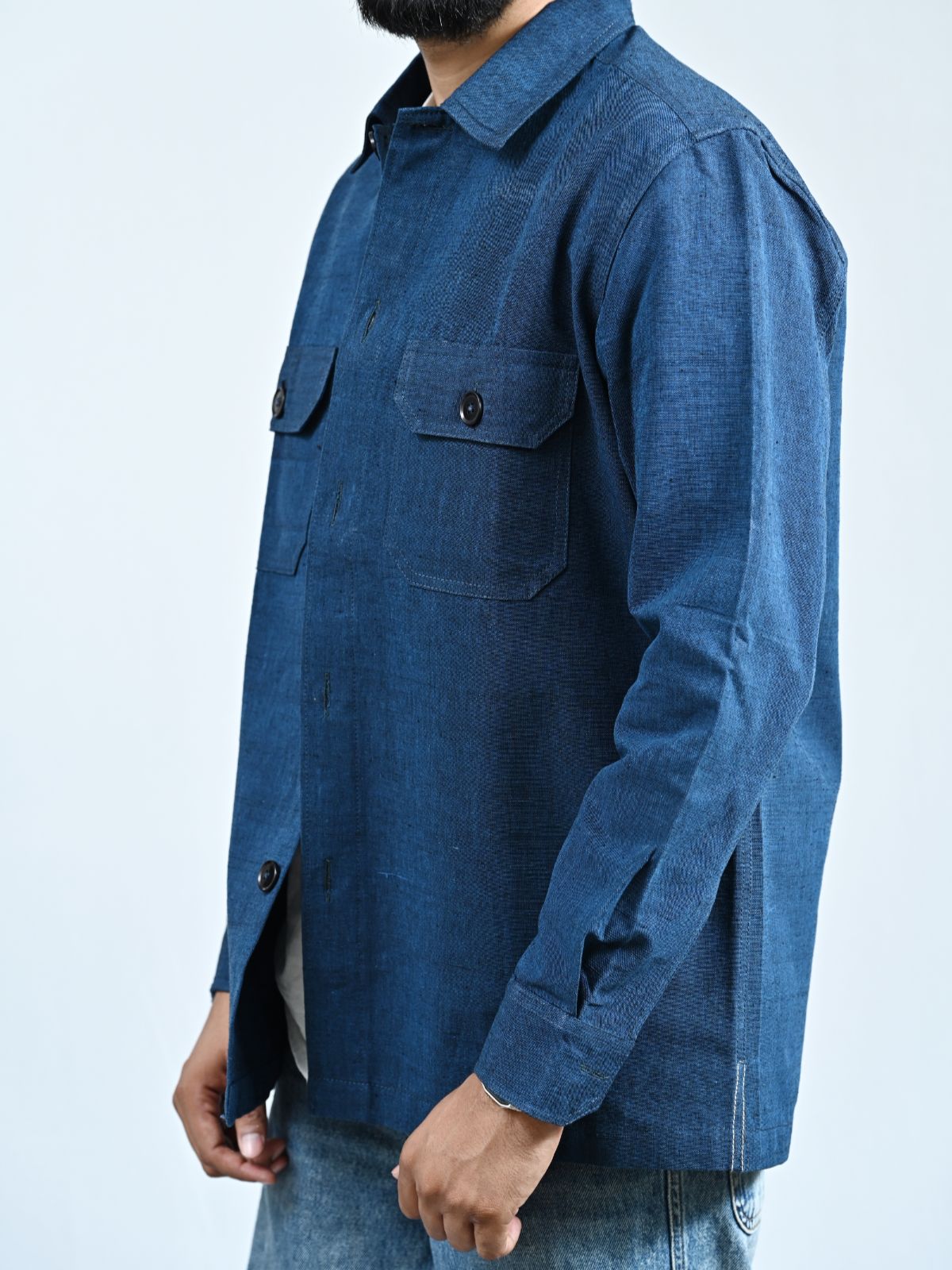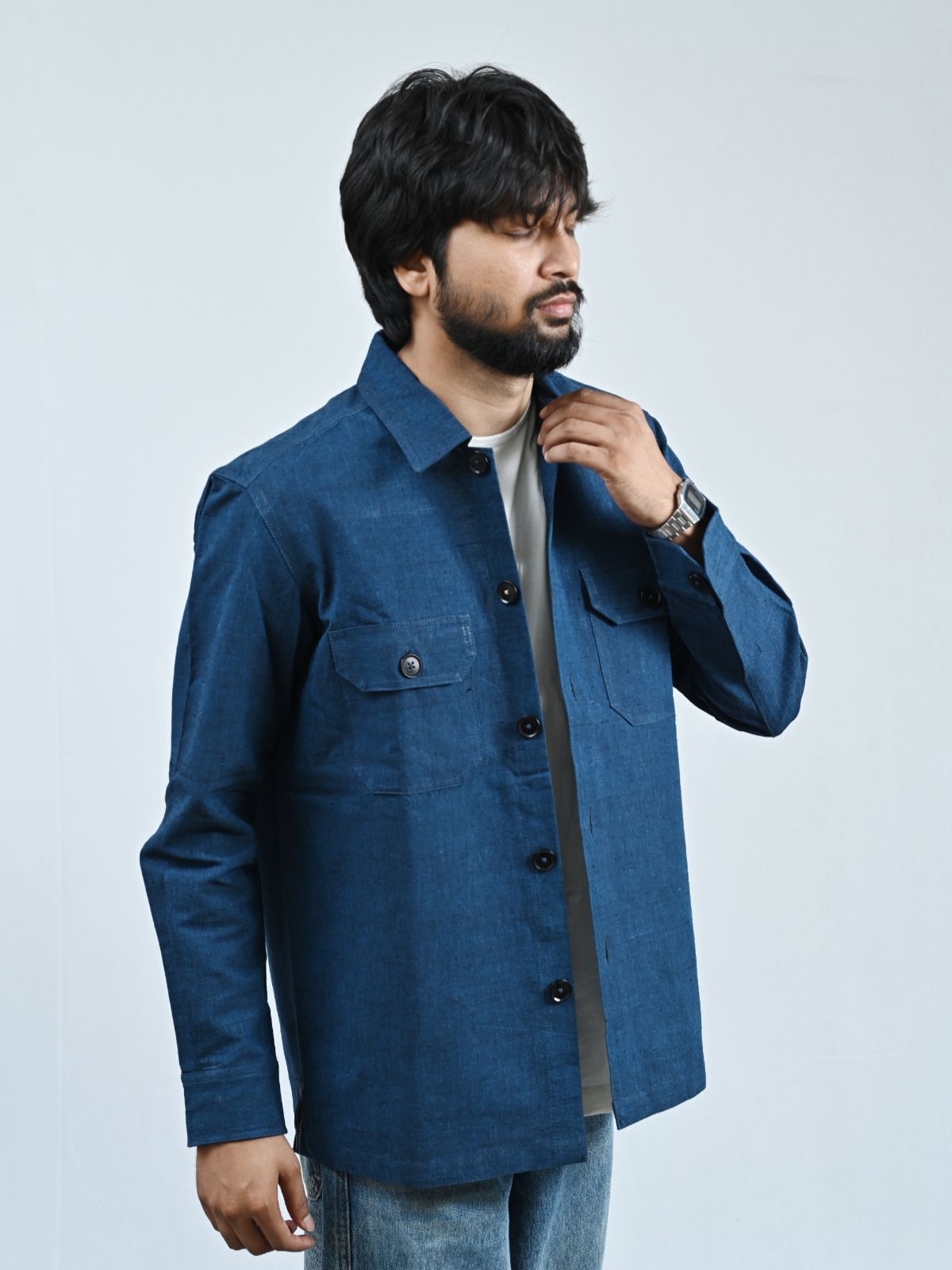 The overshirt is a stylish and comfortable garment suitable for casual, work, or social occasions. Featuring a timeless design, denim-style stitching, and two flap pockets, it offers sophistication and convenience. Made from a heavyweight blend of cotton, it's dyed with azo-free colors and washed for minimal shrinkage.