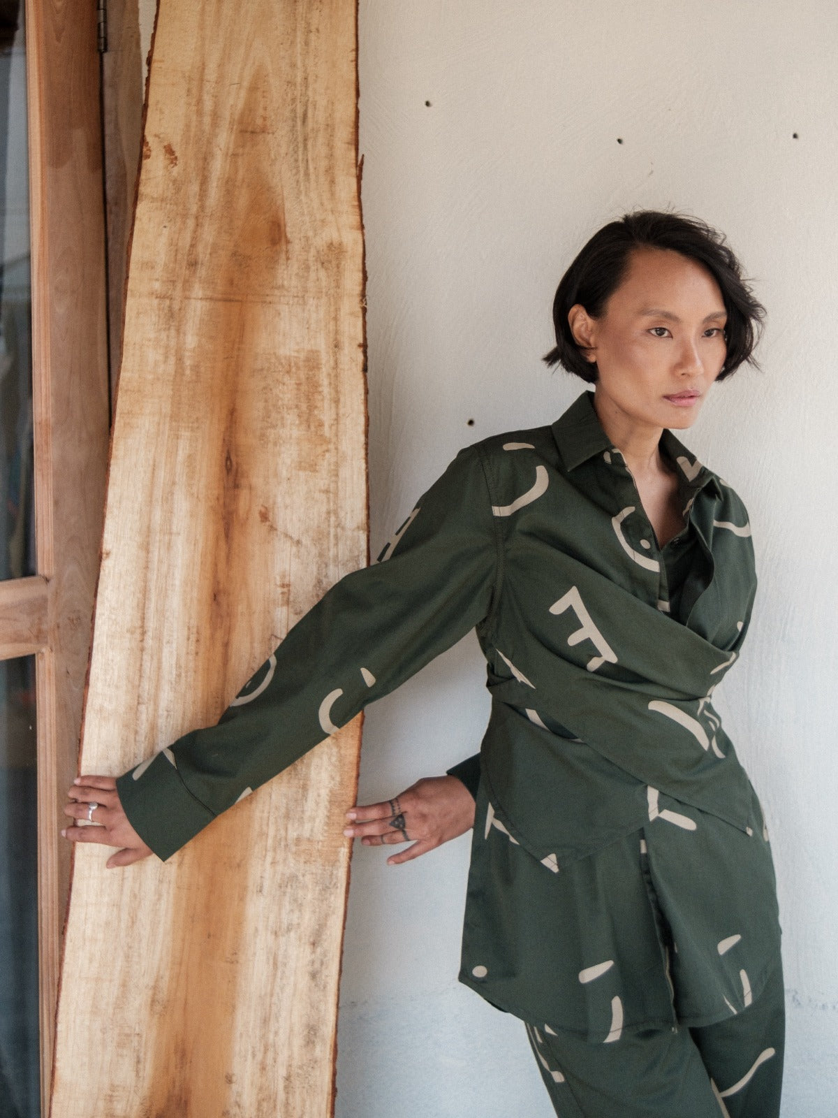 The Deep Green Line Printed Seattle Wrap Shirt is a versatile wardrobe essential that effortlessly shifts from a relaxed oversized silhouette to a tailored fit. Crafted for seamless transitions, it suits both casual daytime wear and polished evening looks. Its distinctive line print and deep green hue add subtle sophistication, making it an expert choice for those who value style and adaptability in one garment.