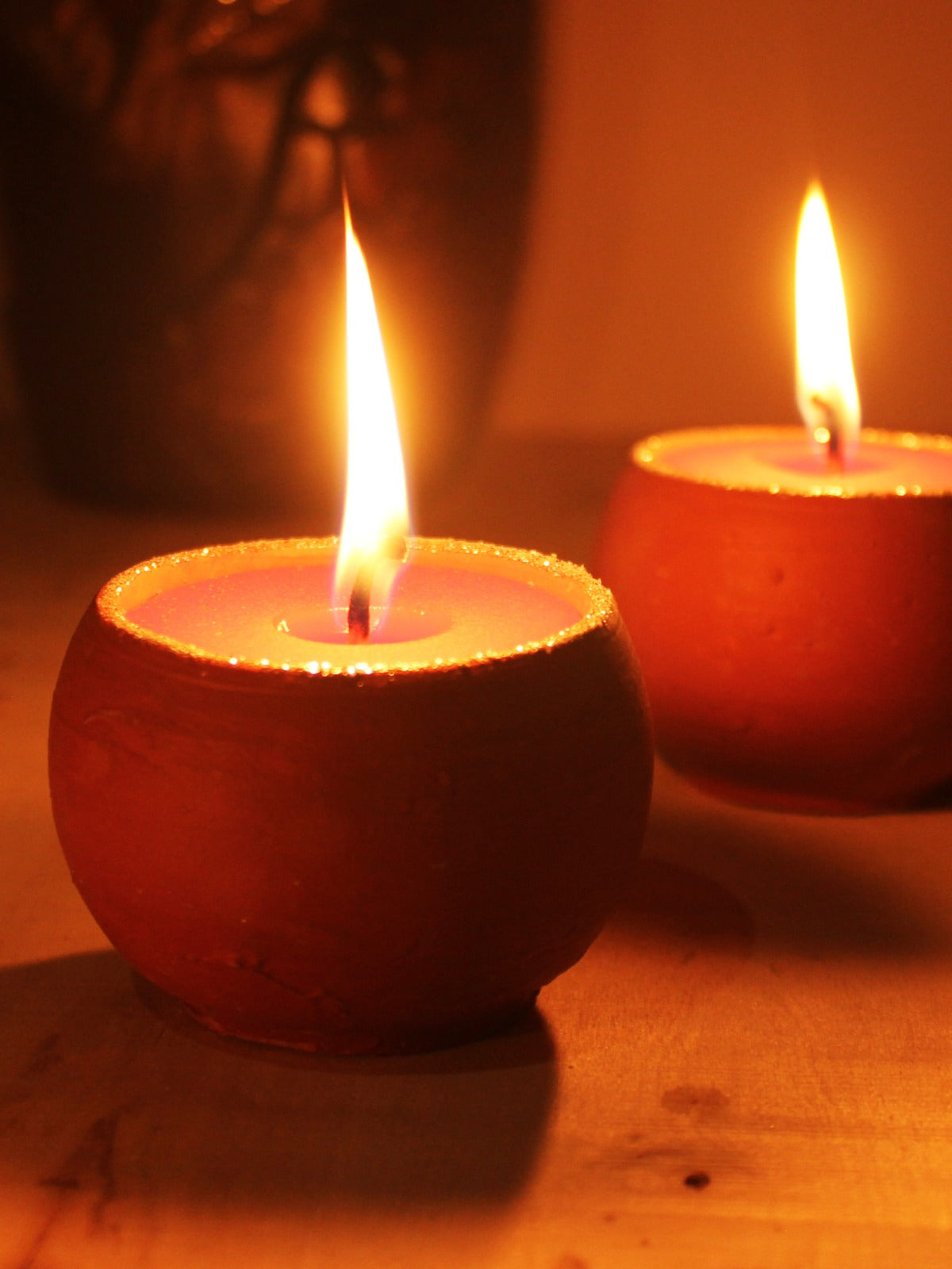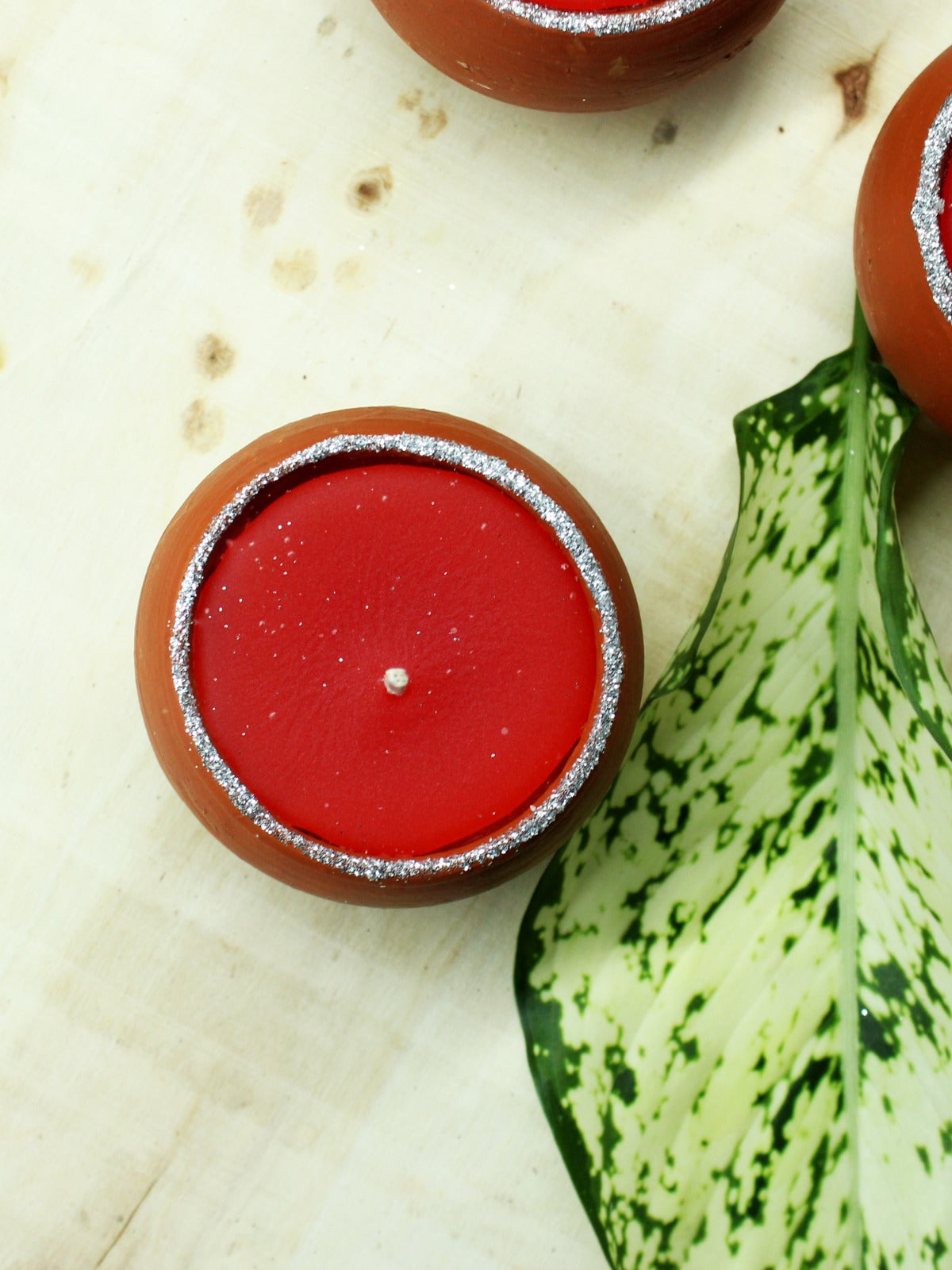 This set includes four dome-shaped terracotta candles featuring eco-friendly wicks, vibrant red wax, and delicately glittered edges. Each candle provides up to 10 hours of aromatic illumination and can be repurposed as a charming reusable pot. Crafted by hand in West Bengal, they make thoughtful and sustainable gifts.