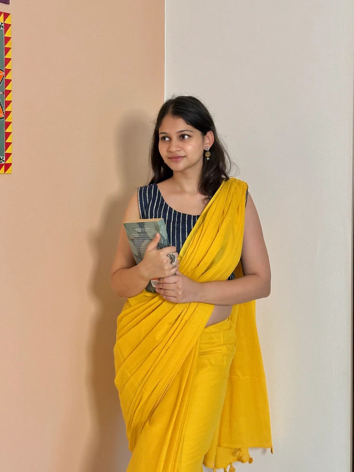 Embrace effortless elegance with this luminous yellow mul cotton saree, designed for the modern woman who values both style and substance. Crafted from premium mul cotton, this piece delivers exceptional breathability and a naturally soft drape that feels luxurious against the skin. Its clean, understated aesthetic makes it remarkably versatile—transition seamlessly from everyday wear to college outings or understated festive occasions. The lightweight fabric ensures all-day comfort without compromising on sophistication, while the vibrant yellow hue adds an instant glow to any complexion. Perfect for those who appreciate quality basics that work as hard as they do.
