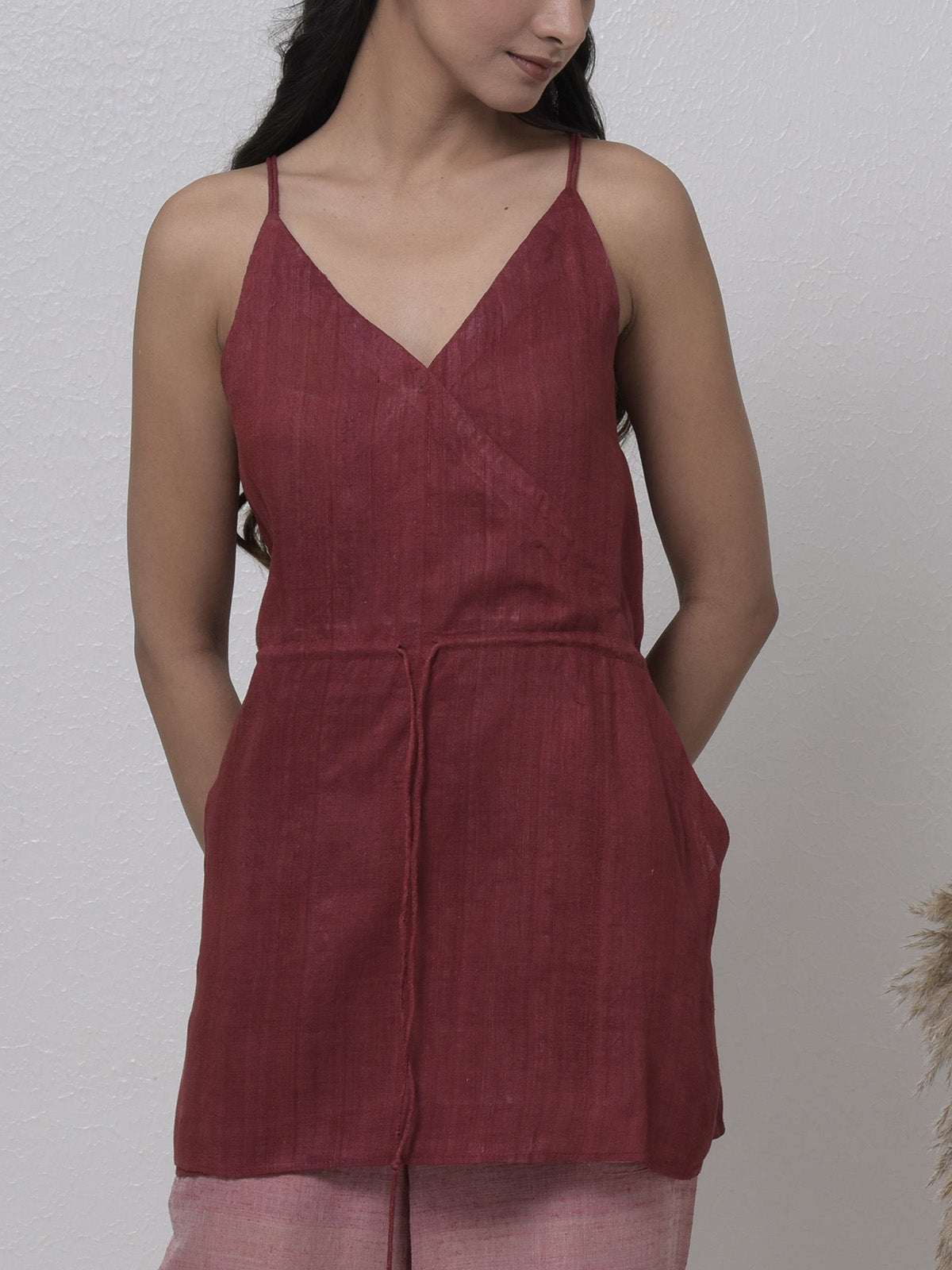 Embrace the versatility and timeless appeal of our maroon cotton full-sleeve top as you effortlessly elevate your everyday look.