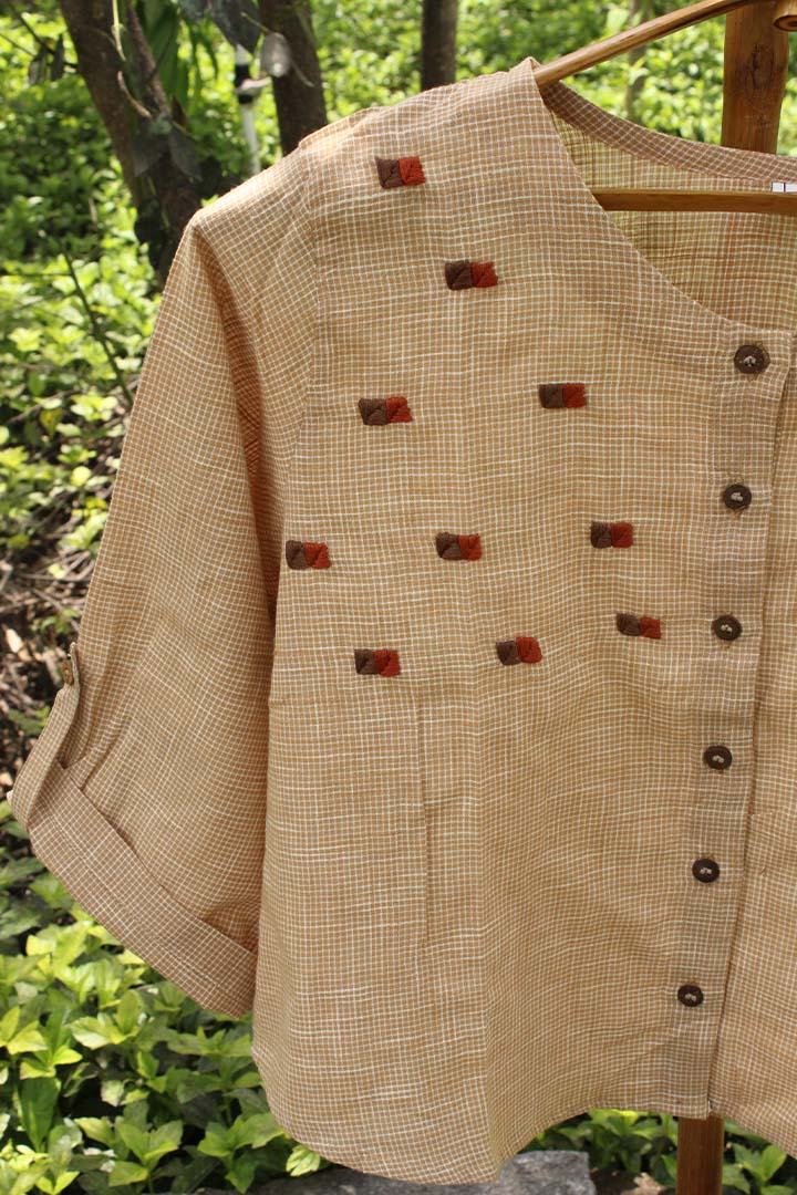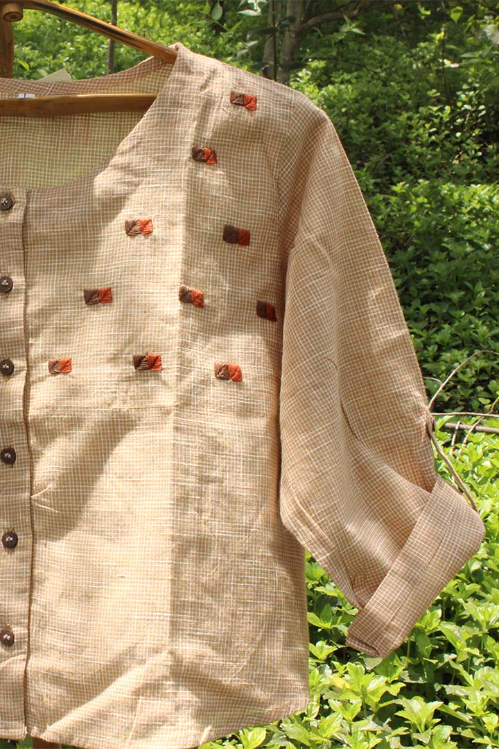 "Embrace elegance with our Beige and White Crop Top, meticulously hand-embroidered on organic cotton from Sittilingi valley. Each piece celebrates traditional craftsmanship, offering a blend of style and sustainability."