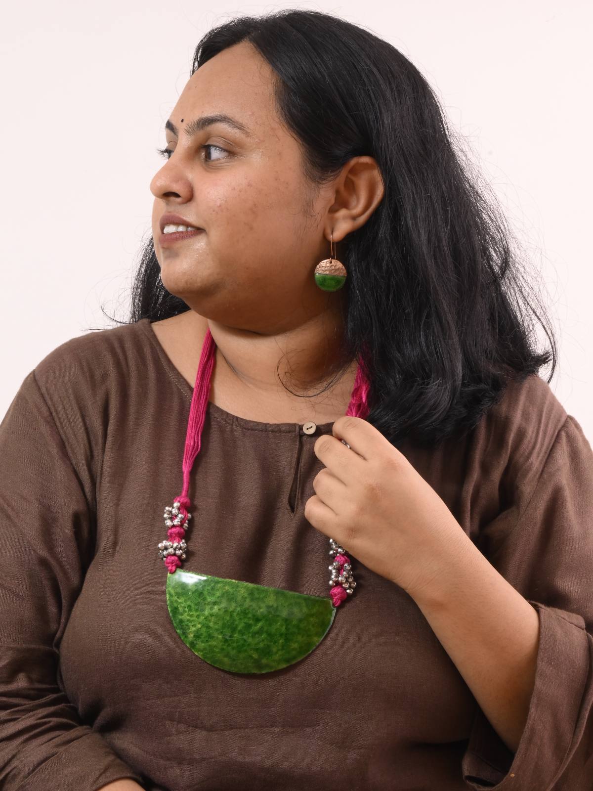 - Product Dimensions: Pendant – L 3.5" X B 5", Cord Length – 18”, Earrings – 3/4"