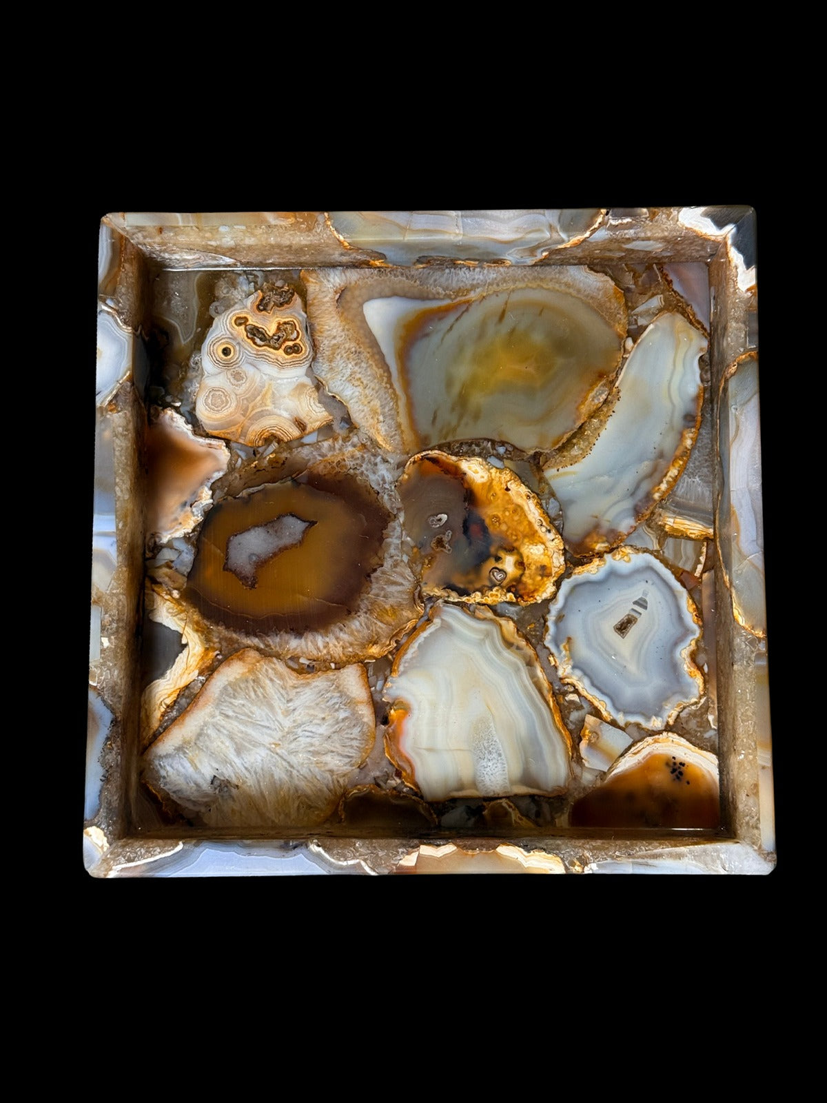 Indian Agate Square Tray Luxurious Natural Stone Decor