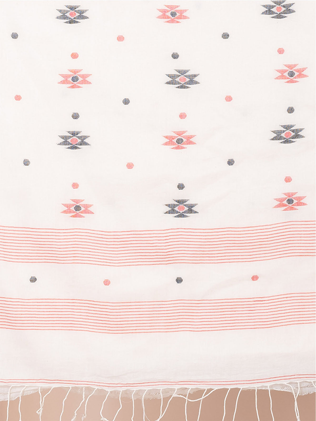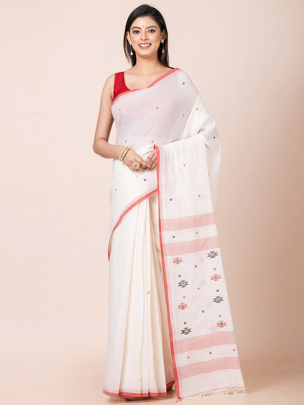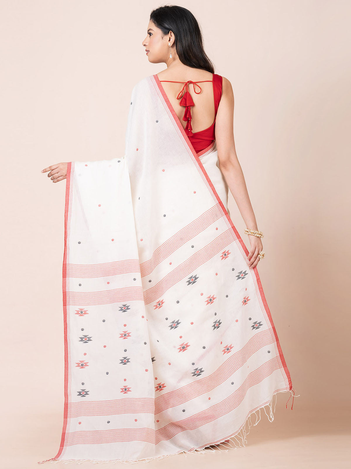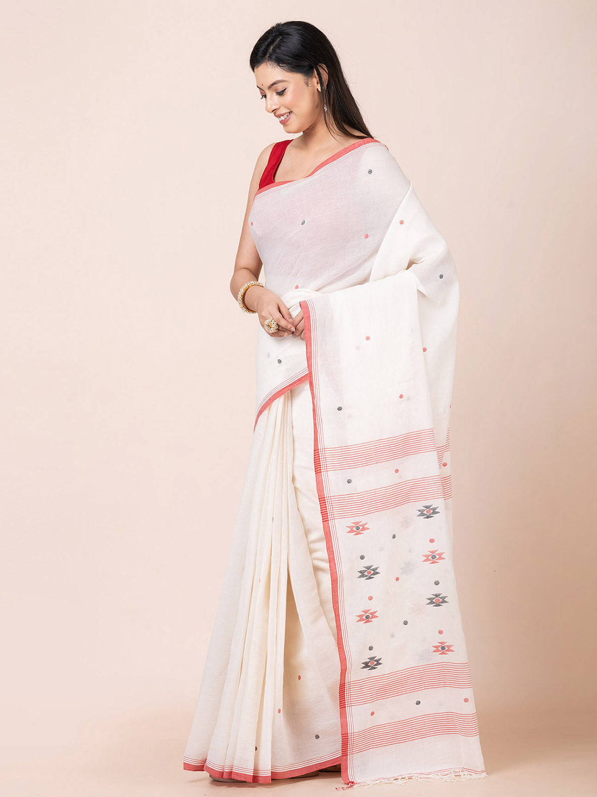 Cotton Saree with Jamdani Motifs Without Blouse Piece II Off - white
