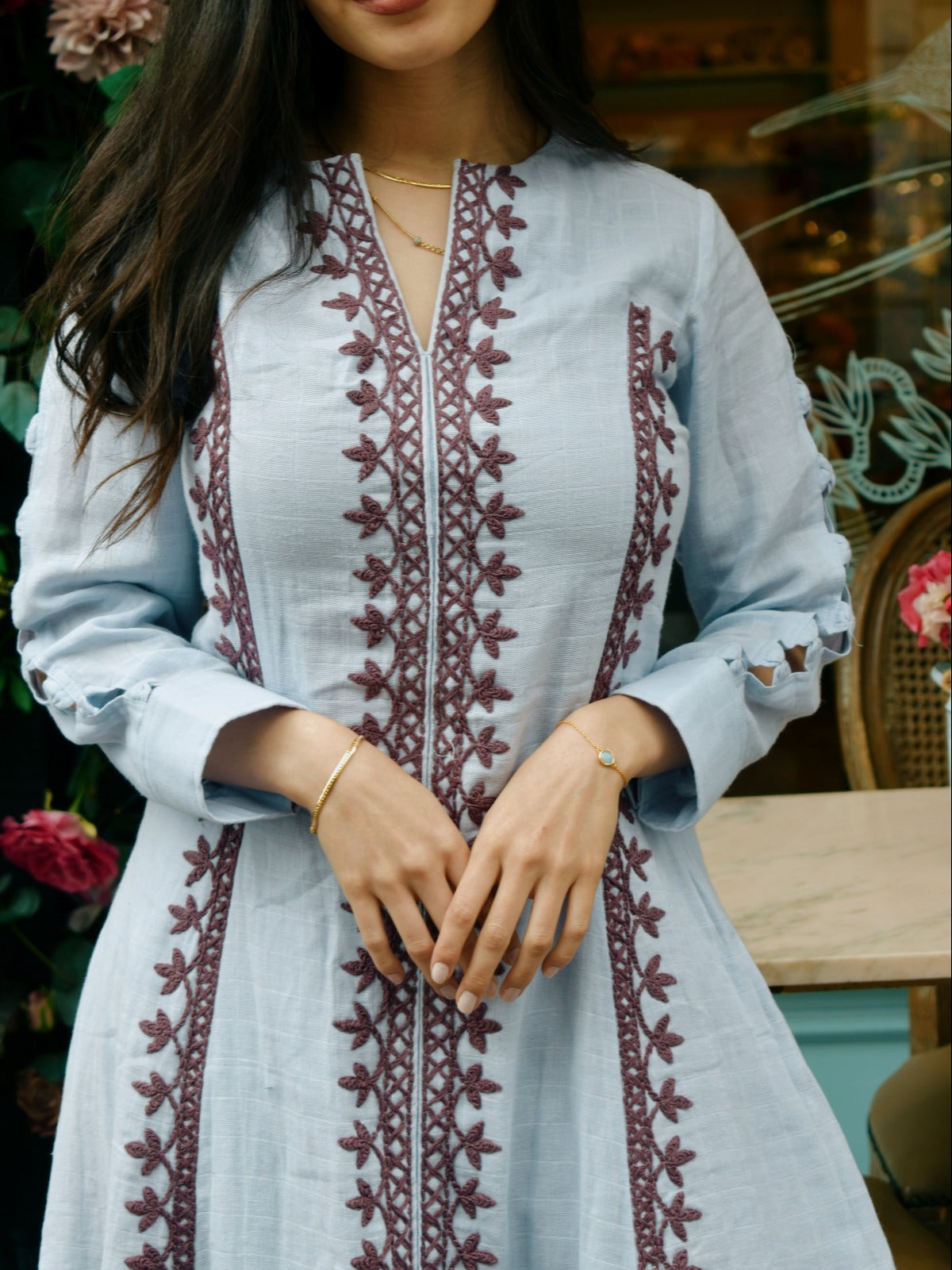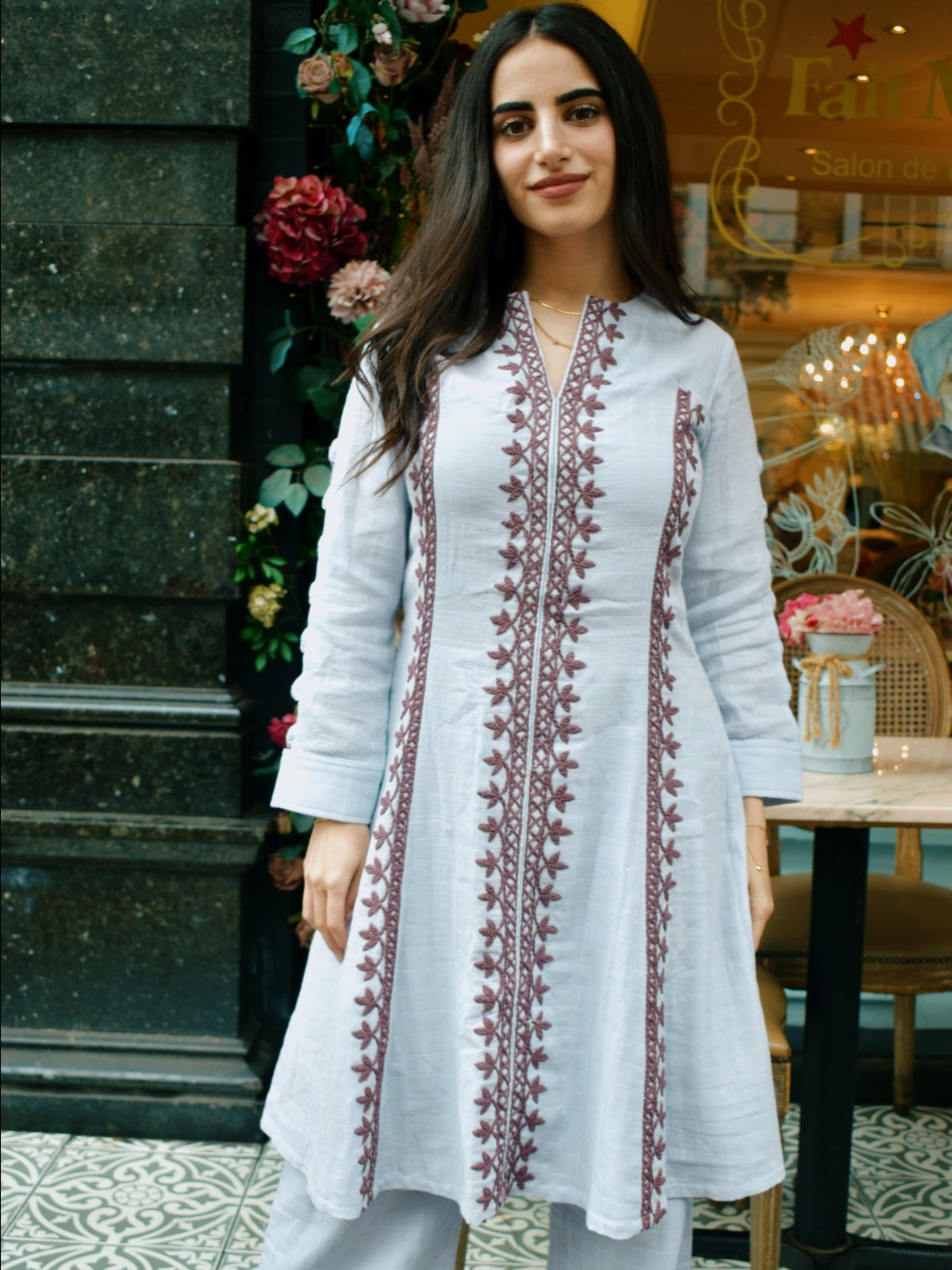 The Lilac Wonderland Dress, woven in organic cotton-bamboo, is naturally dyed and detailed with exquisite hand embroidery. Comfortable yet sophisticated, this kurti captures a dreamy aesthetic, allowing you to embrace a refined, graceful style that feels effortlessly modern and wearable through any occasion.