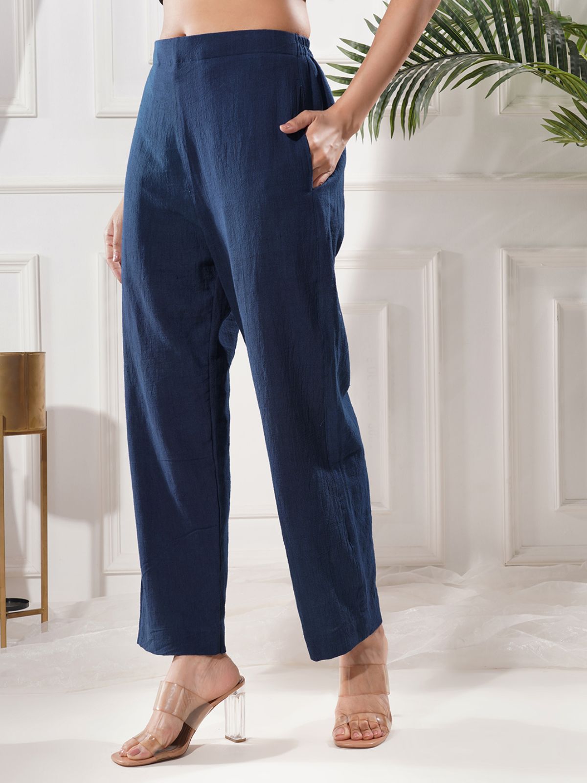 Crafted from breathable handwoven kala cotton in deep indigo hue, this straight leg pant is dyed in azo free dyes and tailored for comfort. They are perfect for conscious fashion lovers who seek both flair and function. Pair them with our matching shirt or a relaxed white top for easy going sustainable look.
