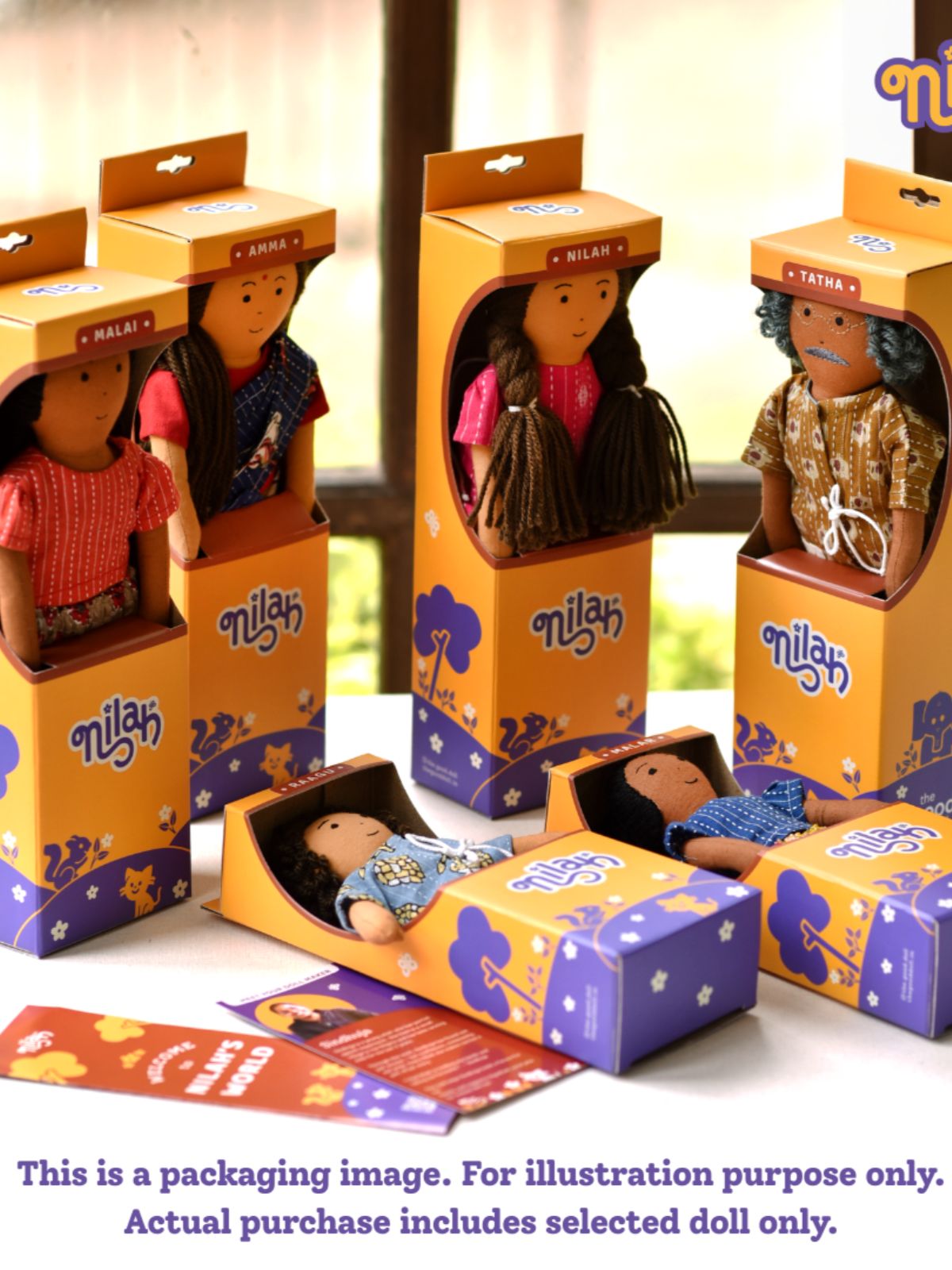 Crafted by hand and thoughtfully packaged, this fabric doll celebrates the spirit of the Western Ghats' Blue Mountains. Nilah's Elder Sister embodies body positivity and colour inclusivity through her classic grey aesthetic. The doll and her interchangeable garments are fully washable and designed for longevity—minor wear can be easily repaired at home. Styled hair and customizable clothing allow for creative play and personal expression. An ideal gift for those who appreciate artisanal craftsmanship and meaningful storytelling rooted in India's natural heritage.