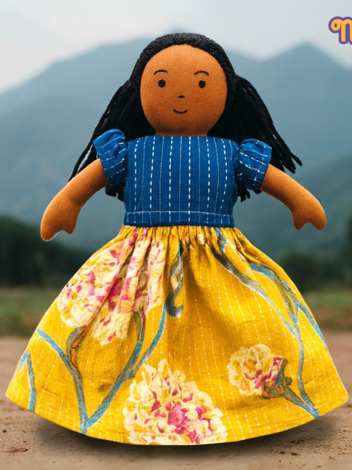 Introducing Malar, a handcrafted fabric doll inspired by the biodiversity and spirit of India's Western Ghats. This thoughtfully designed companion features washable garments that are easily changeable and hair that can be styled to suit imaginative play. With a body-positive, colour-inclusive design, Malar celebrates diversity and relatability for every child. Durable and long-lasting, any wear can be simply mended at home, ensuring years of cherished companionship. Arrives in eco-conscious gift packaging, making her an ideal present for those seeking meaningful, sustainable toys that honour both craftsmanship and environmental responsibility.
