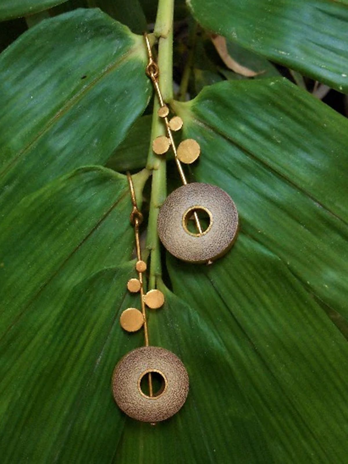 This collection comprises handcrafted and exquisitely worked bamboo discs which are set using reclaimed brass which is then gold plated. No zinc or any other non-hypoallergenic material are used in this jewelry. We think the pay off-easy on sensitive ear - is worth it. If you are on the look out for sustainable luxury which is also minimalist, this collection is for you.