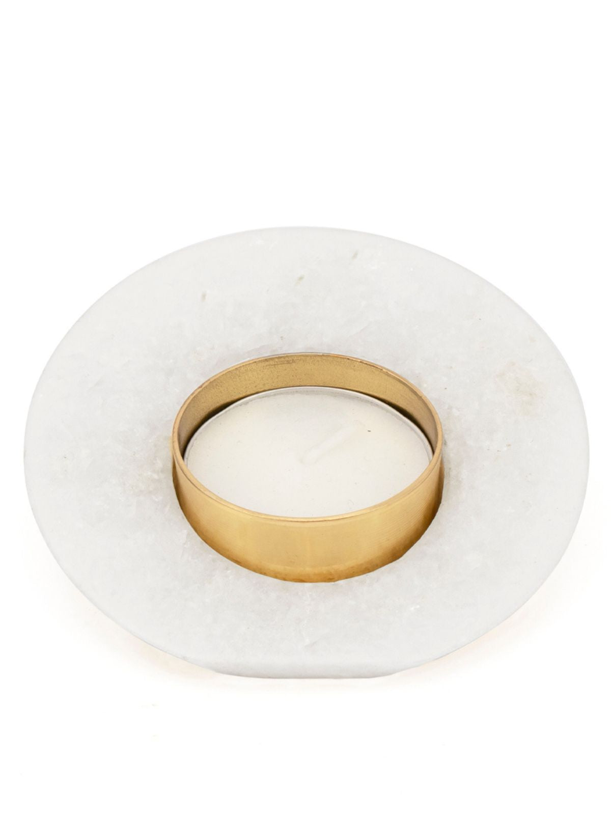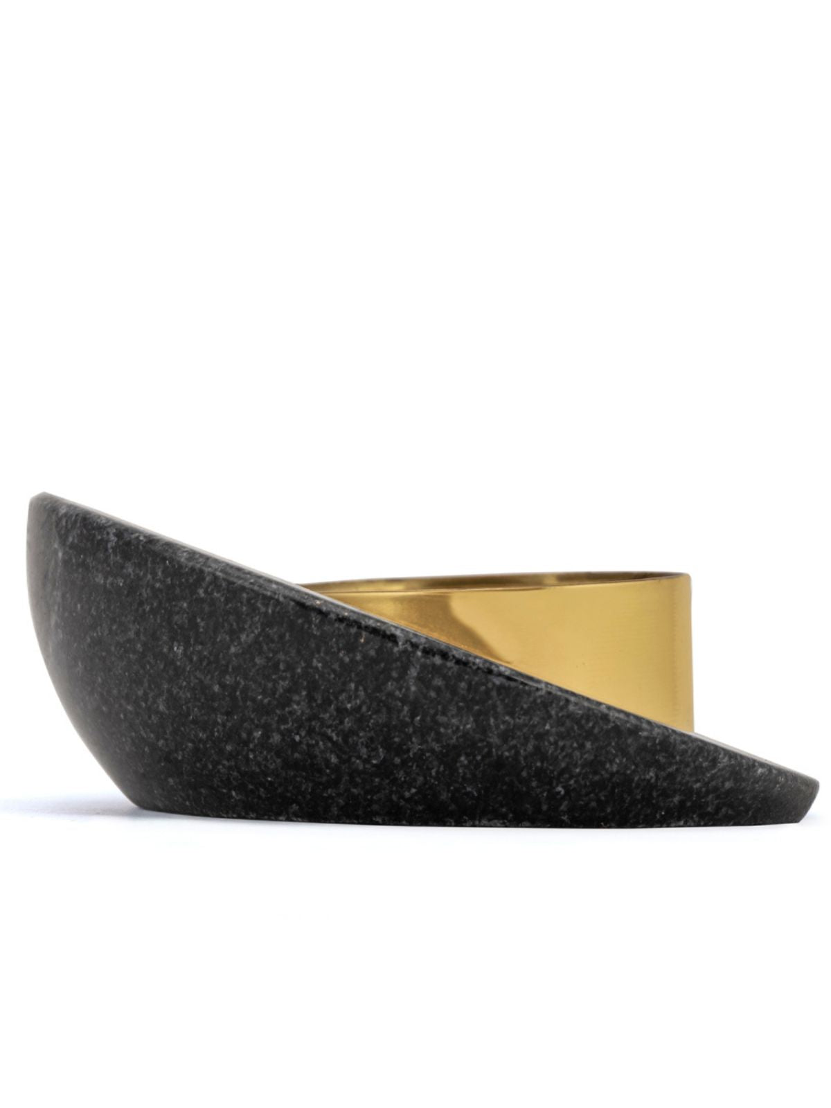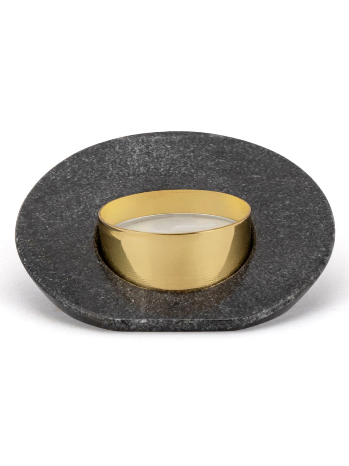 Carved from one single piece of white marble and black marble, these Sangemarmar tea-light, is a perfect blend of traditional and contemporary design. With its geometric form and detailed curved form give them a very modern outlook. These handcrafted Sangemarmar tea light, definitely brings attention to its form and its finish. A set of two or three will brighten up the space around you. The combination of white/black marble with polished brass t - light makes them an elegant piece.