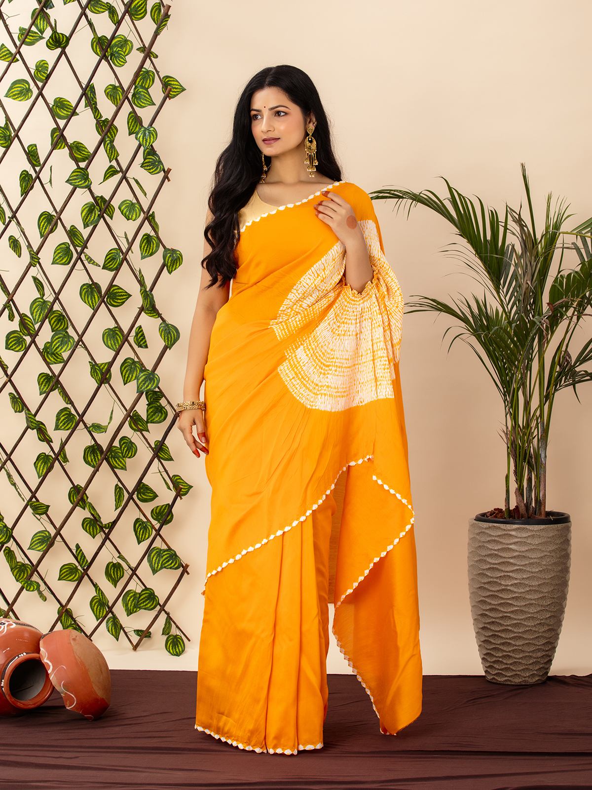 Shibori Tie And Dye Saree Yellow