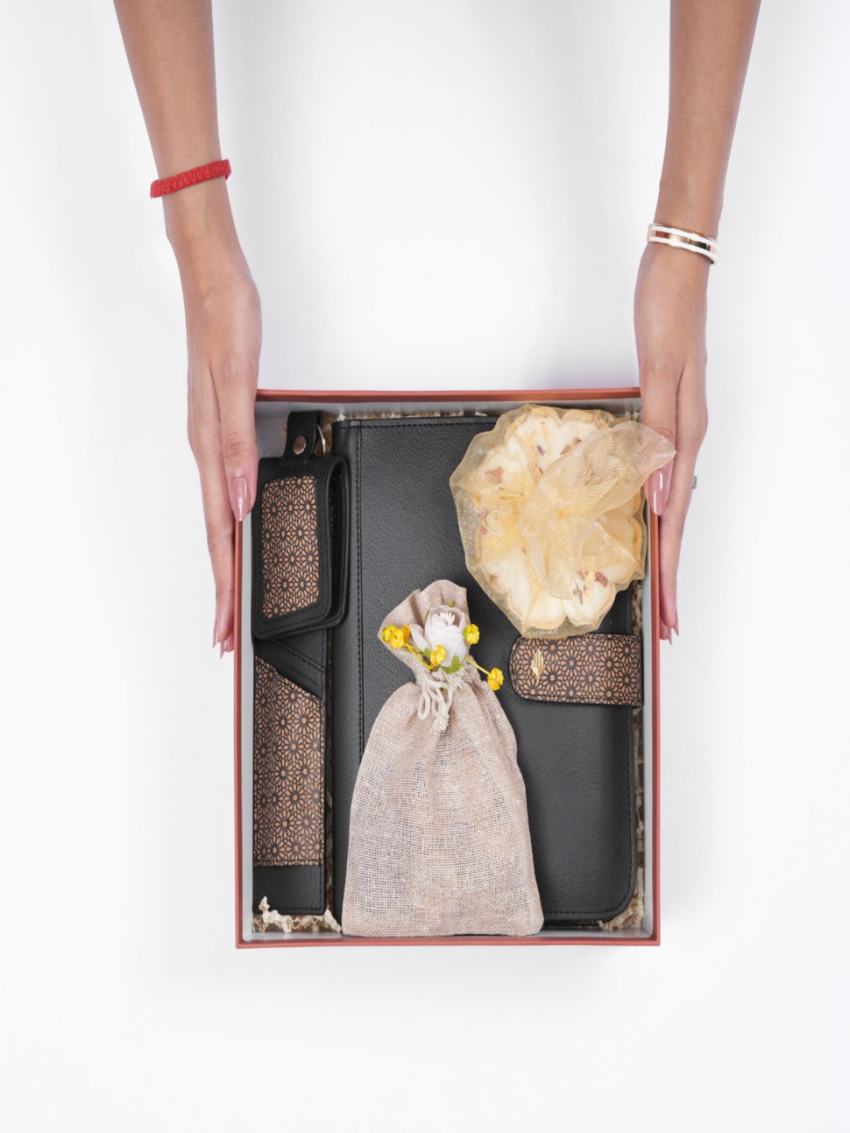- In The Box: ⦁ Diary ⦁ Leather Pouch ⦁ Key chain ⦁ Book Mark ⦁ Pack of 5 - Vegan Chocolate Bites ⦁ Urli Soy Wax Candle