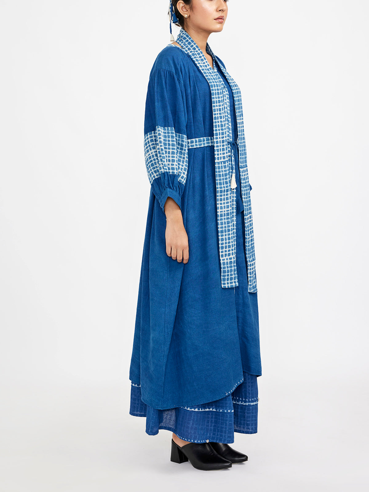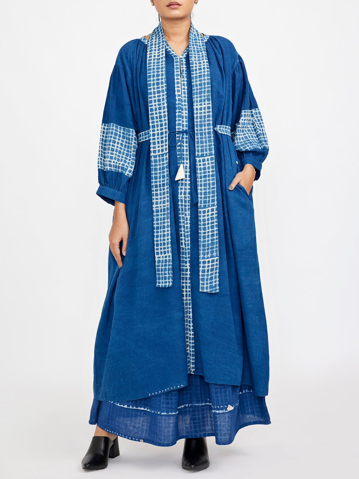 Dry clean onlyTwo Piece Set Featuring Long Solid Tunic Accentuated With Block Printed Checks Blue