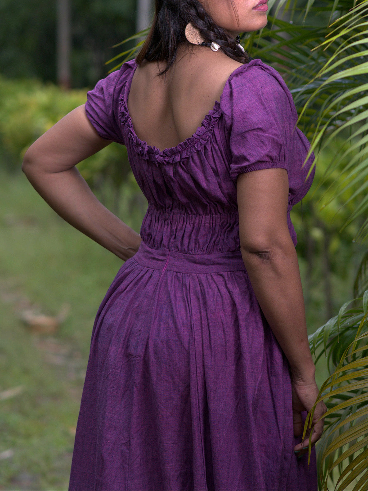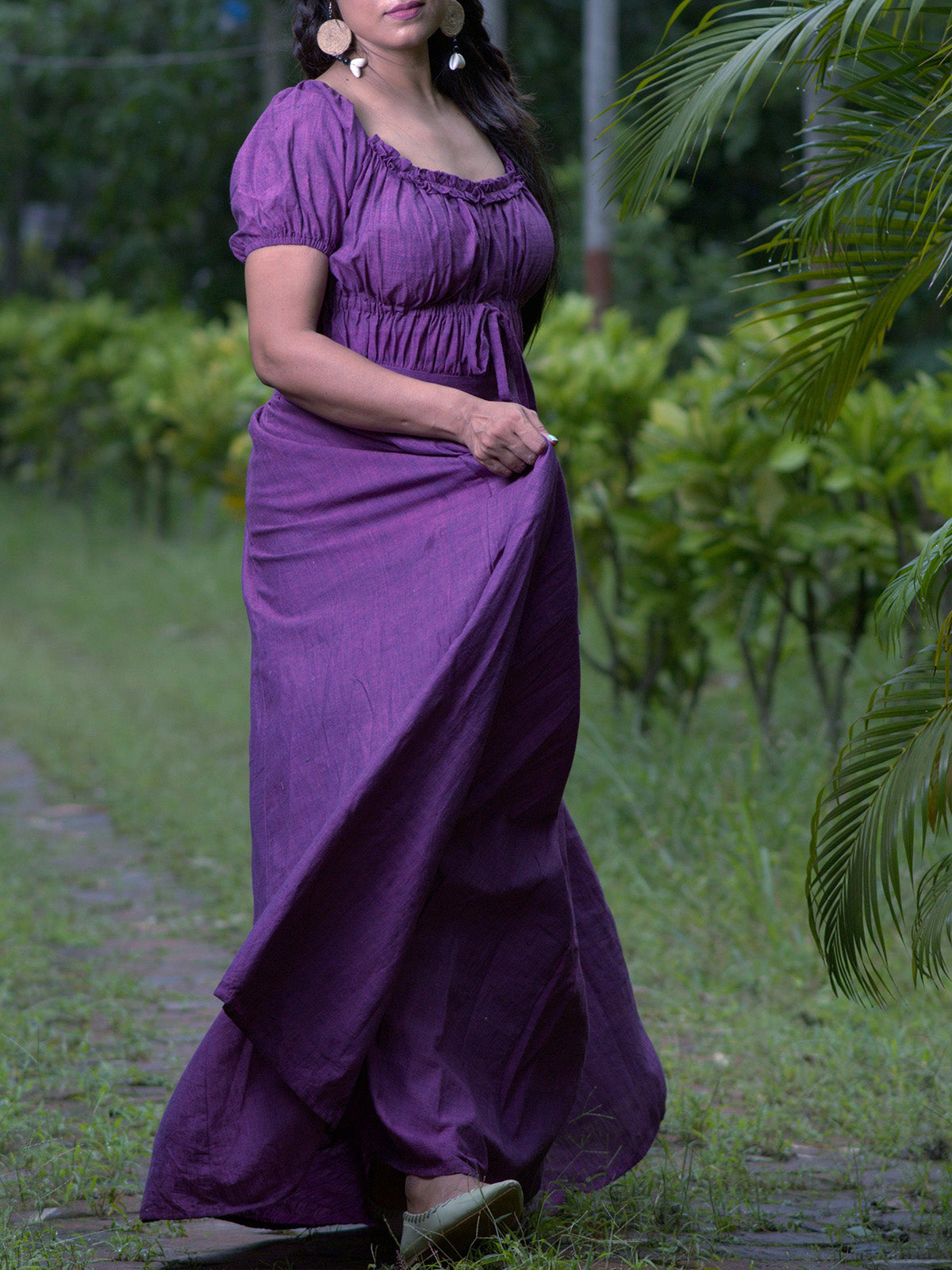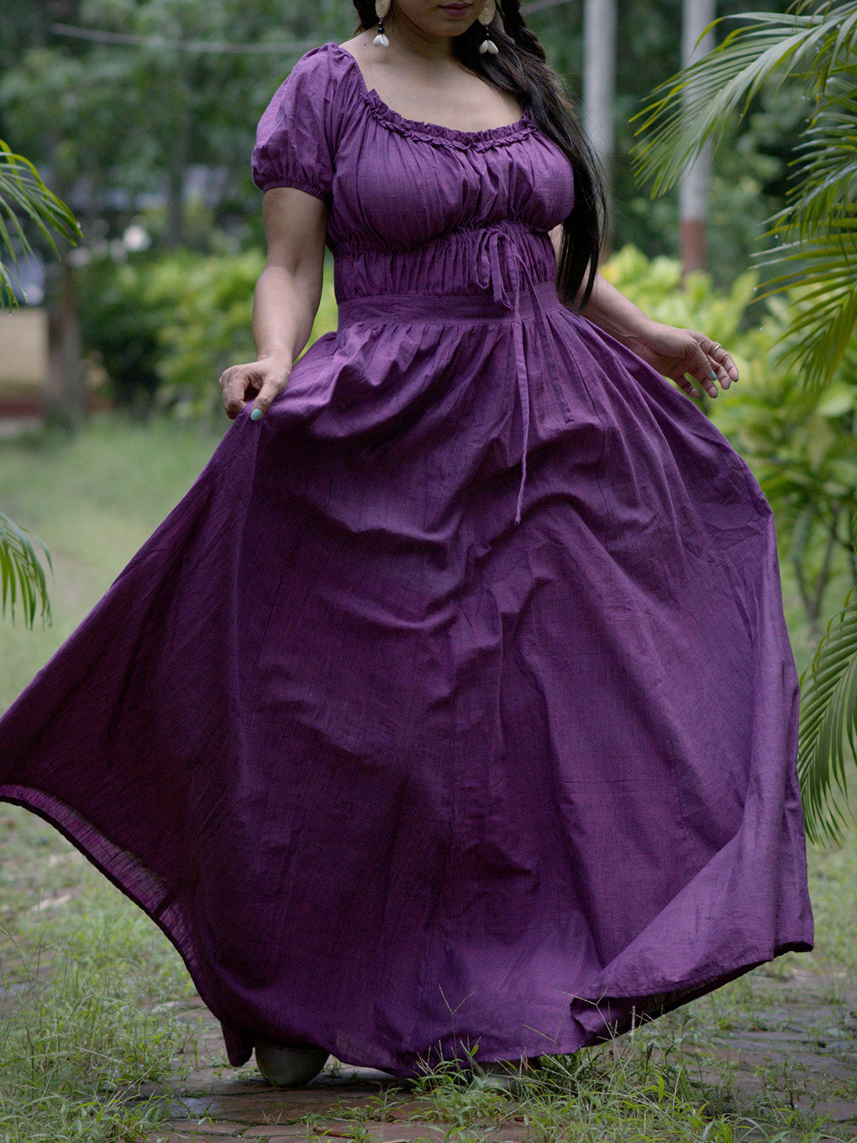 Step into enchantment with the Times Epilogue Dress in Violet. This layered corset shape maxi gown is crafted from premium handwoven cotton, offering a lightweight and airy feel. Ideal for evening cocktail parties, the round neck and short sleeves add a touch of renaissance elegance, ensuring you're the mystical center of every captivating story.