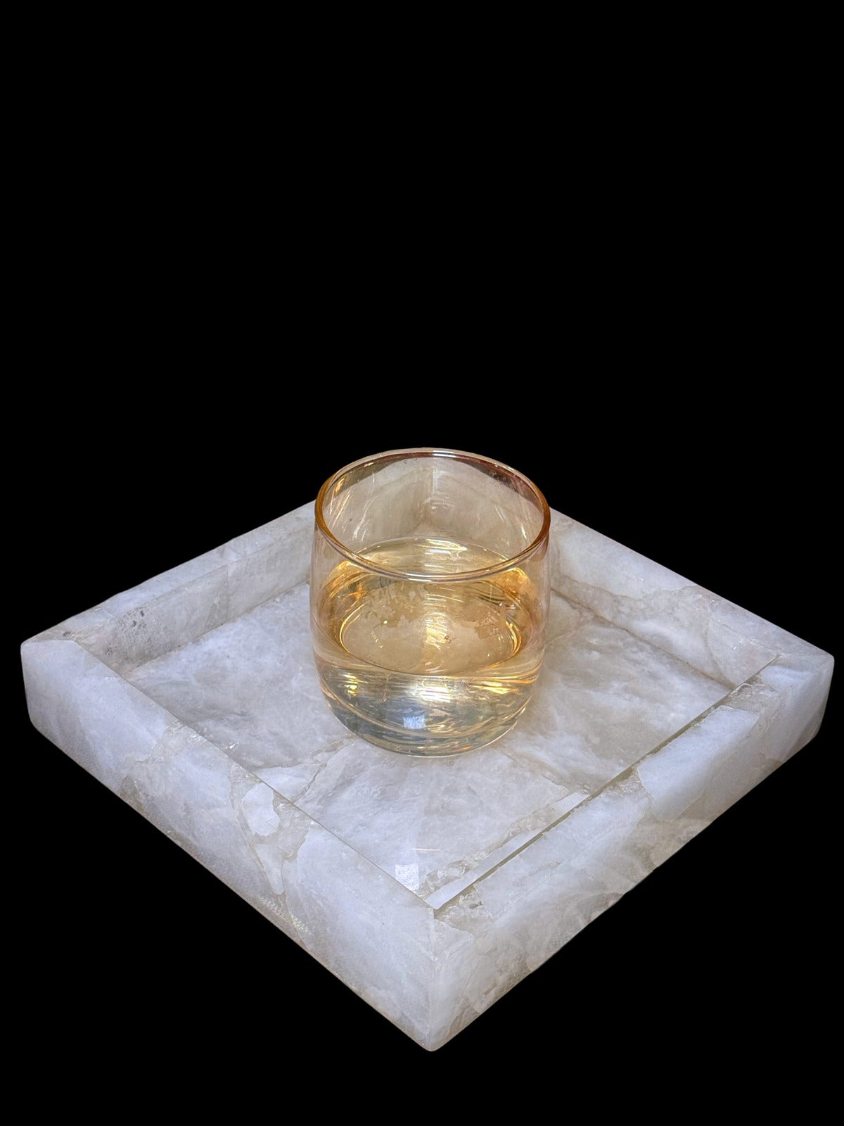 White Quartz Square Tray Luxurious Natural Stone Decor