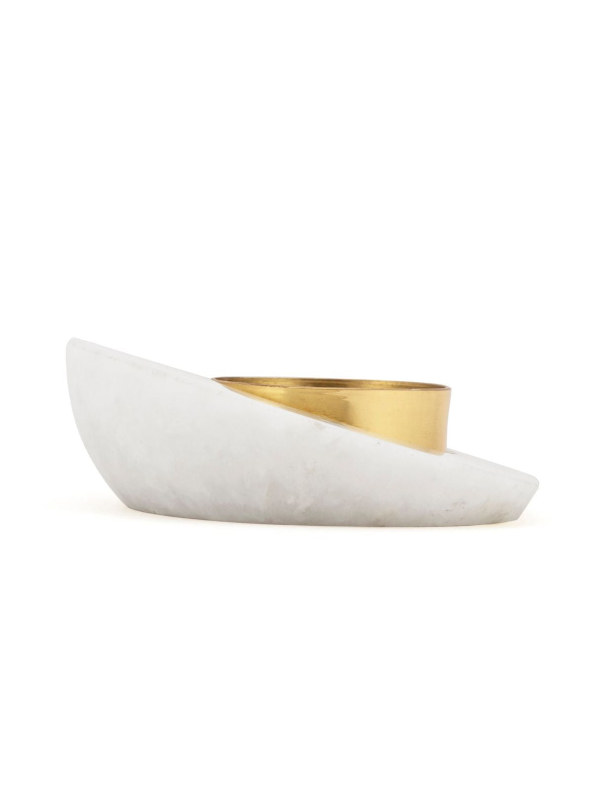 Carved from one single piece of white marble and black marble, these Sangemarmar tea-light, is a perfect blend of traditional and contemporary design. With its geometric form and detailed curved form give them a very modern outlook. These handcrafted Sangemarmar tea light, definitely brings attention to its form and its finish. A set of two or three will brighten up the space around you. The combination of white/black marble with polished brass t - light makes them an elegant piece.