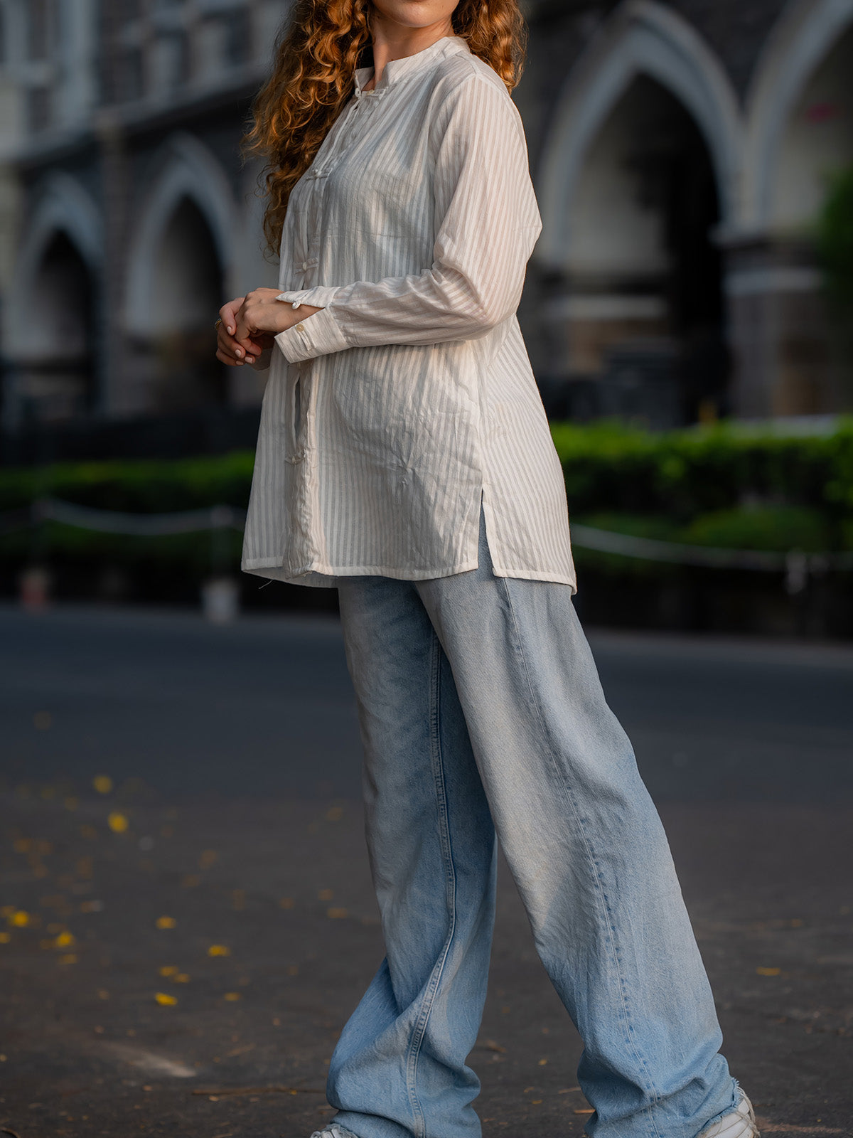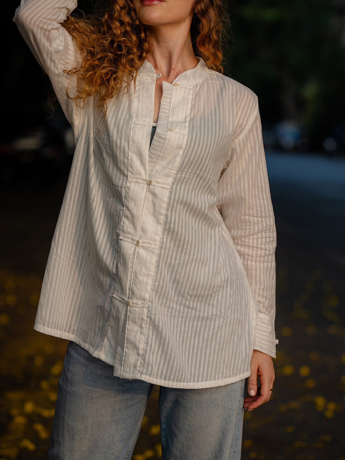 - Neckline: Mandarin Collar