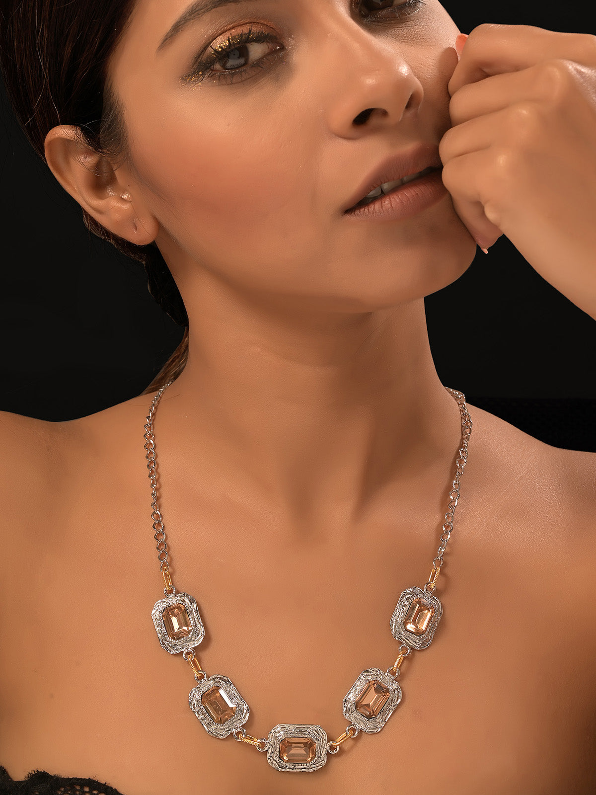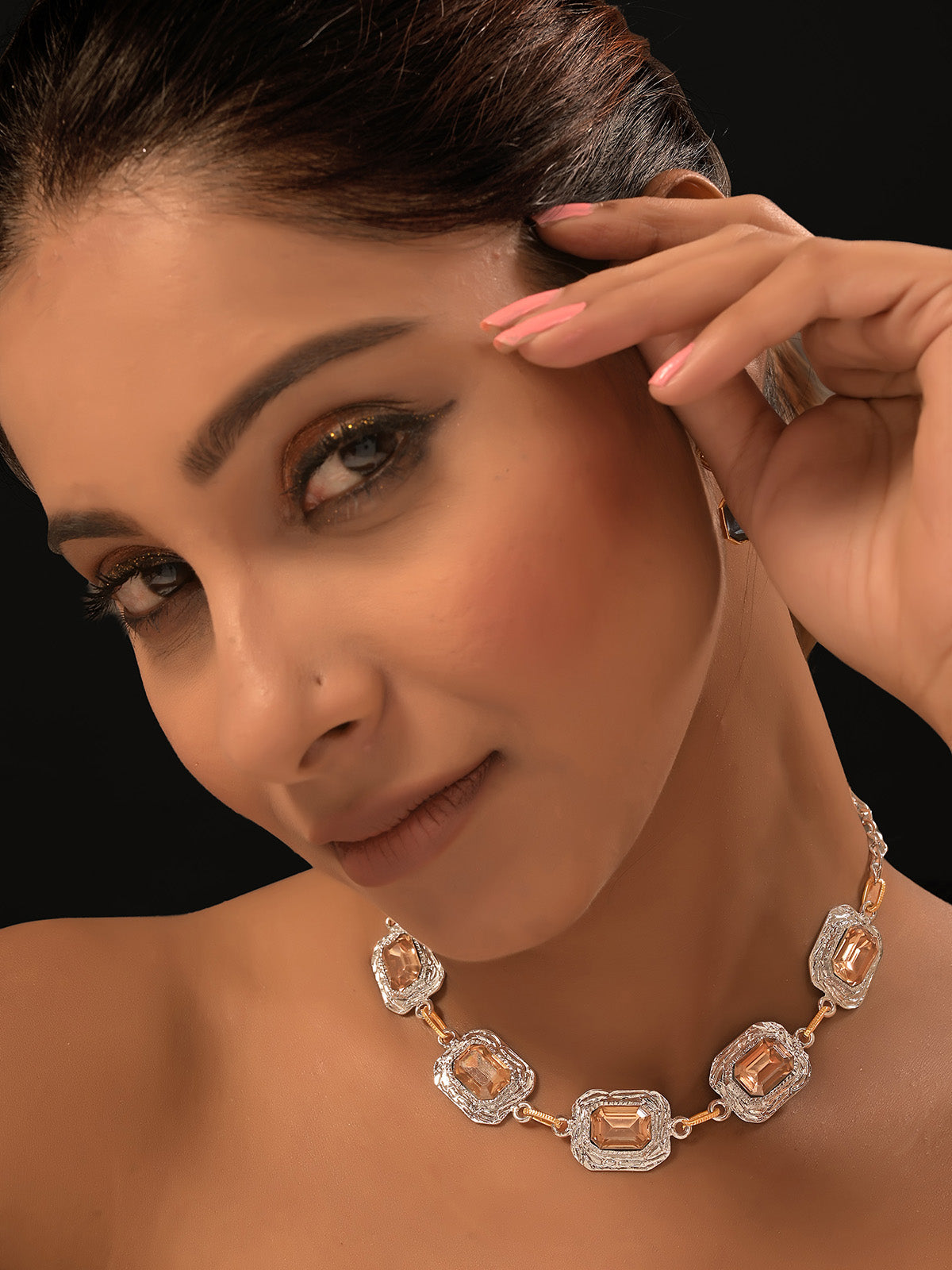 An intricate rendition this necklace plays with floral elements of Medoso's iconic textue with hand-cut swarovski elements set within an 18k gold-plated frame. Swap out your boring dailies for these conversation-starters.